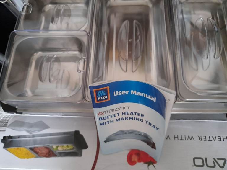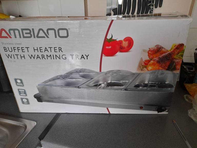Ambiano buffet heater with warming tray.Used 1x last year,so in excellent condition.2 large and 2 small lidded compatments.Box is a little bashed £15