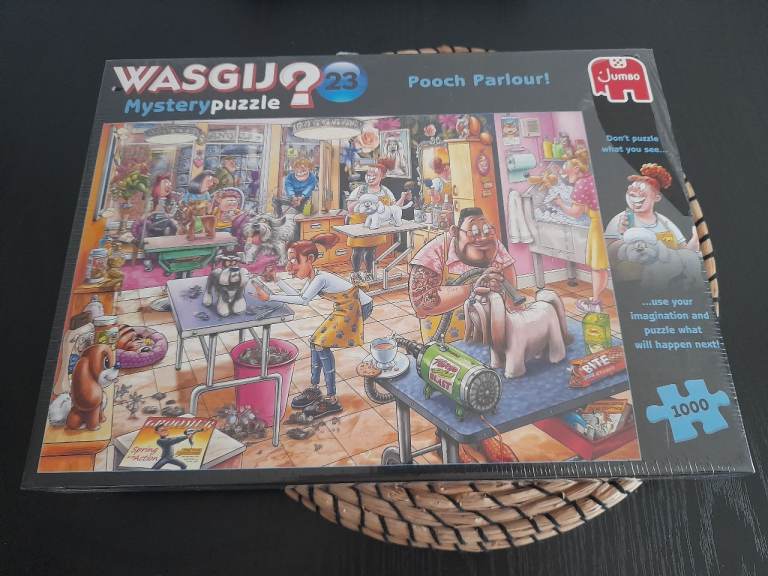 WASGIJ?23 Mystery puzzle.Pooch Parlour 1000 piece.Unwanted present.A small part of the cellophane has a hole,box not affected by this. £8