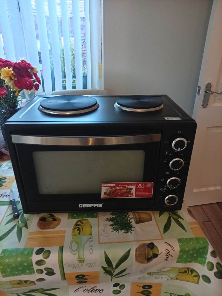 Only 18 months old, bought as a temporary stove during house renovations. In very good condition. Includes 3 wire shelves and grill pan with wire rack insert. Quick sale needed. 4 ceramic burners