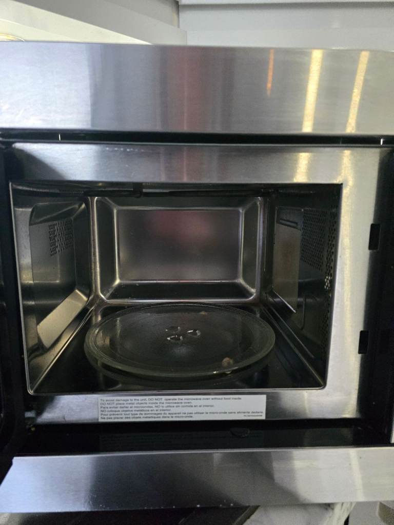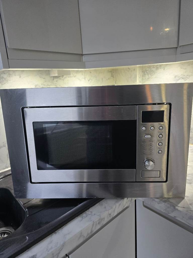 Silver built-in microwave, excellent condition, clean well looked after, plug in mains socket