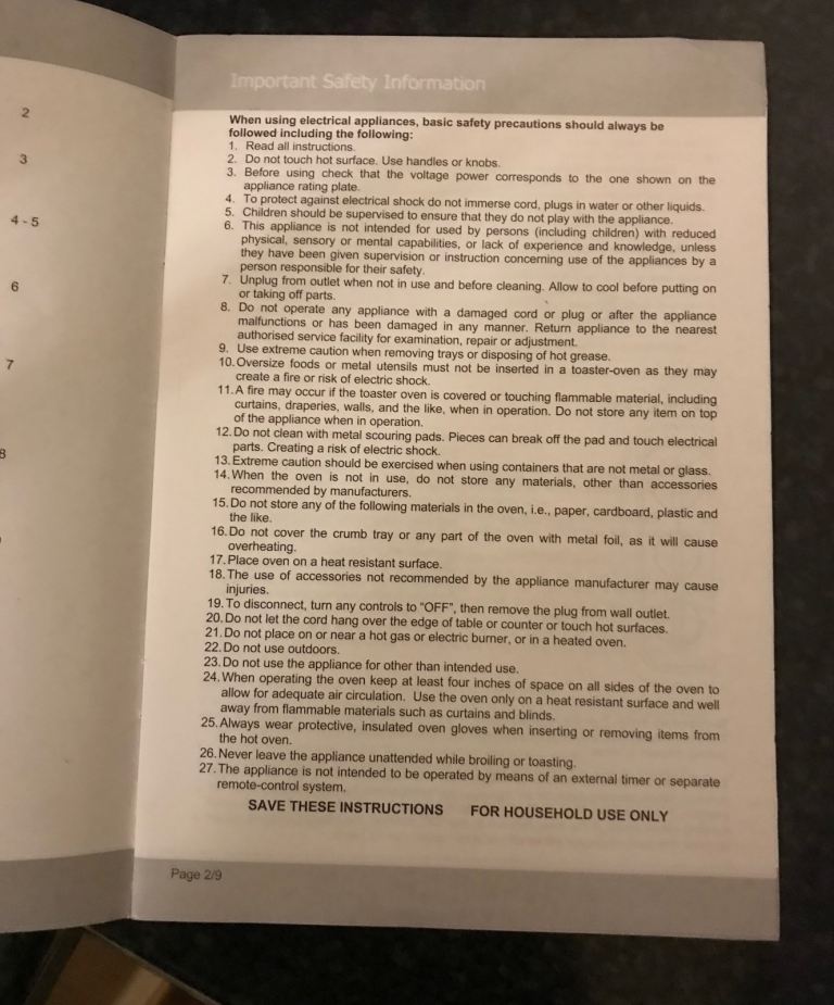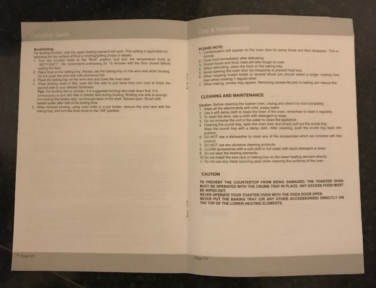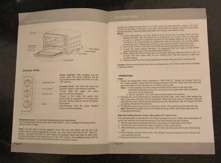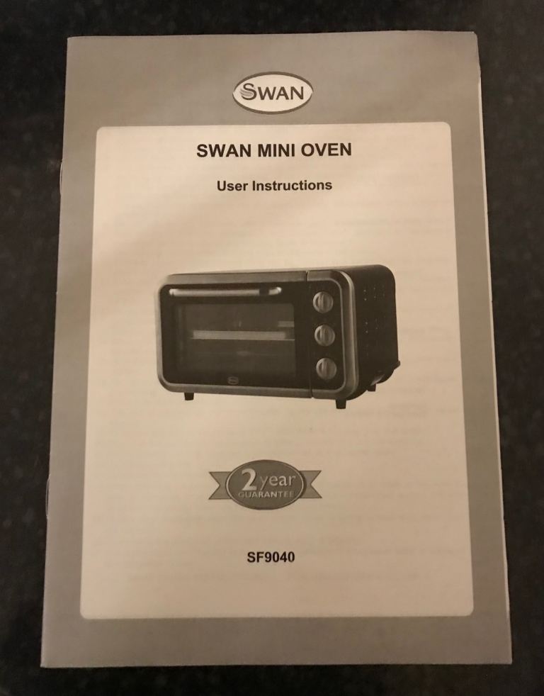 This Swan mini oven is very useful if you just have something small to cook. I’ve taken photos of the user instructions manual so you can see what it’s capable off. On the top of the oven your see a few marks but that’s cosmetic doesn’t affect the way the oven works. Comes with a baking tray which is marked.