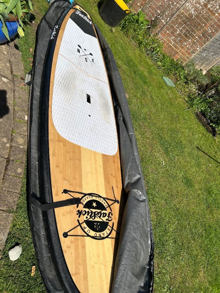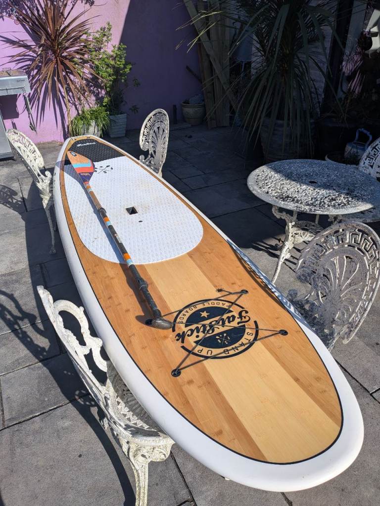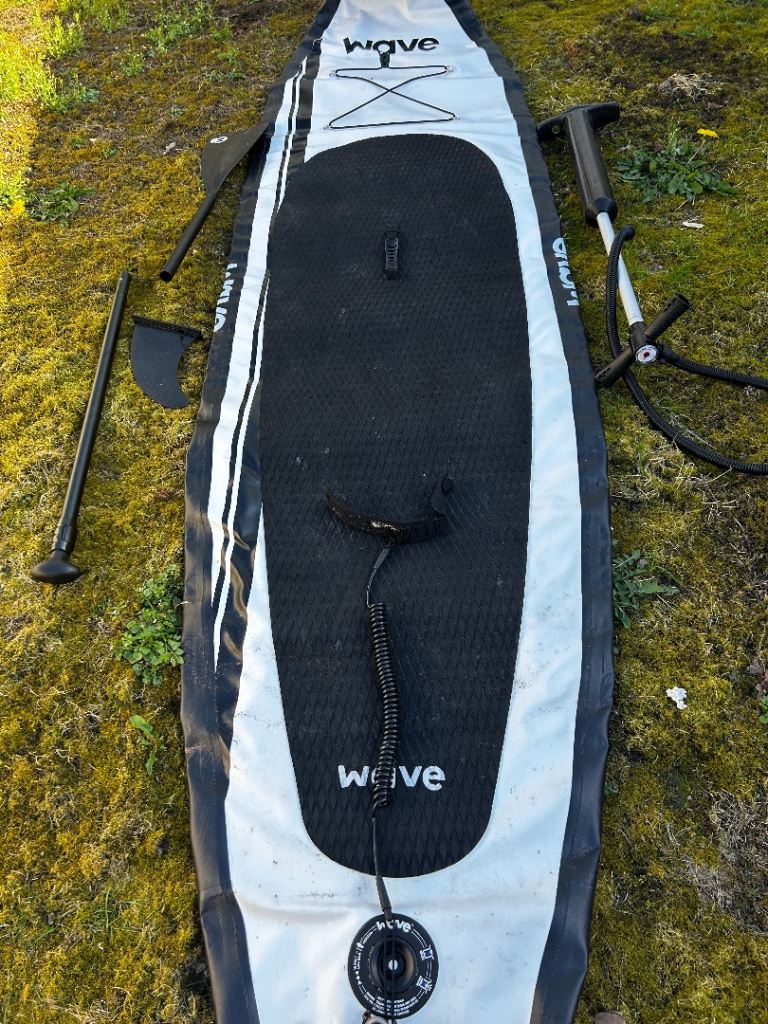 Comes as a full package including the board, a paddle, pump, leash, fins, and a robust carrying bag.