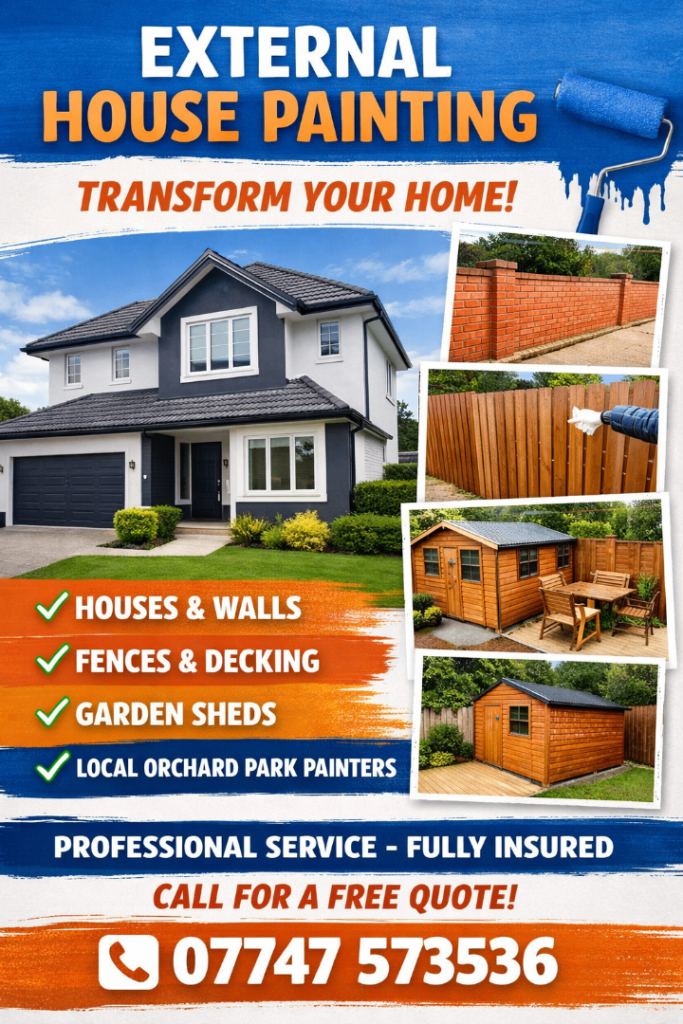 Local house painters available for all external house painting in the Local orchard park area. We are based in orchard park and currently taking on work in the local area