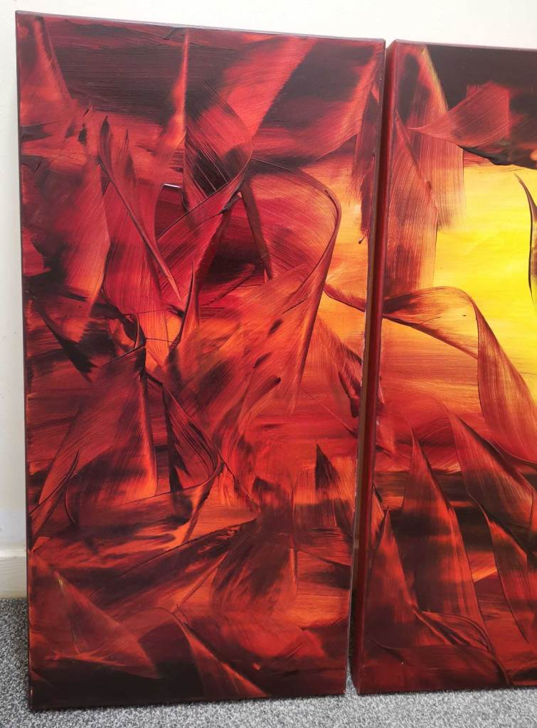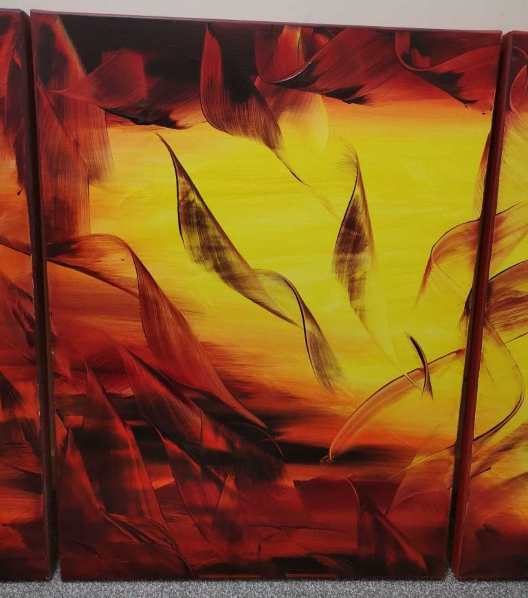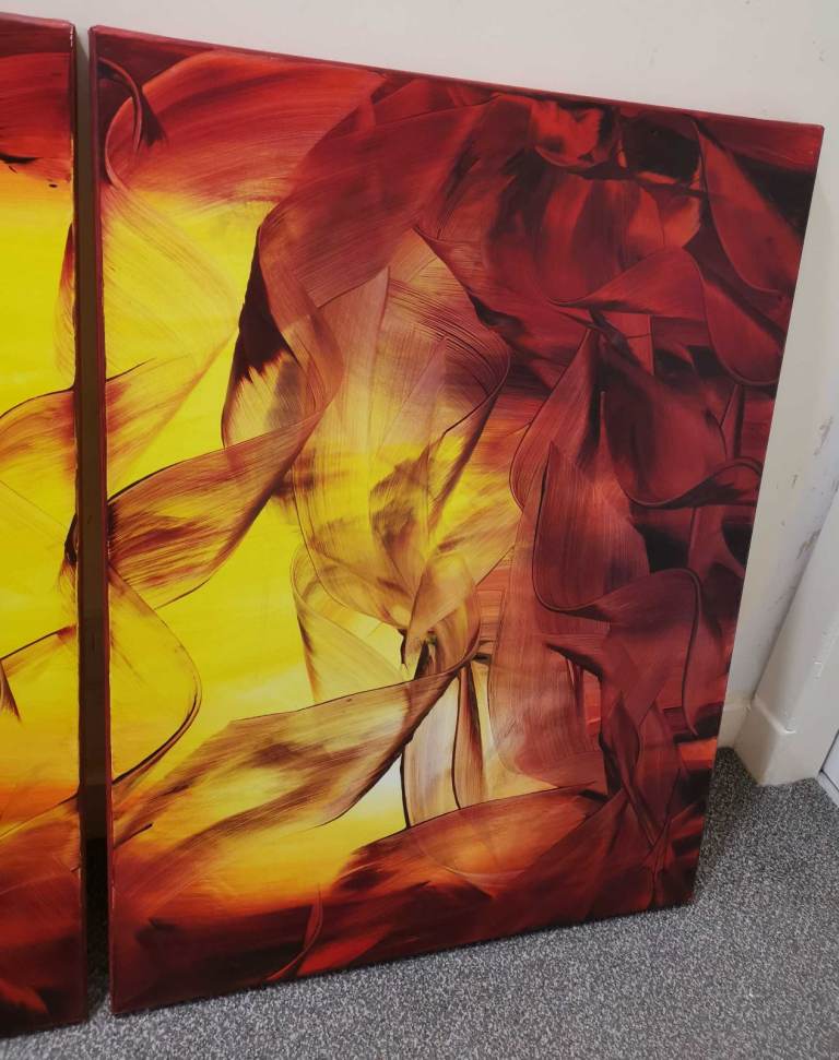 Posting for 3+ years3-piece painting Abstract Red Yellow 160x80 cm