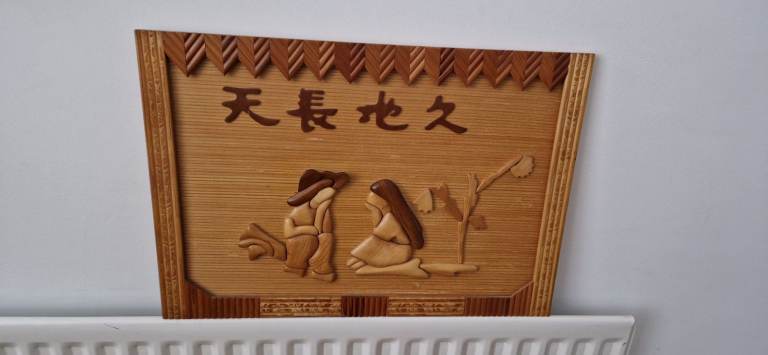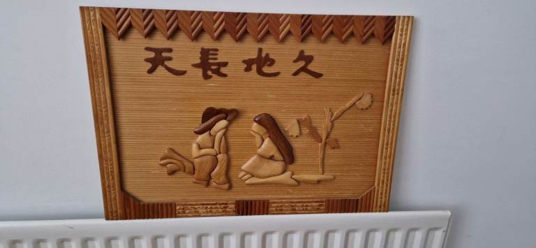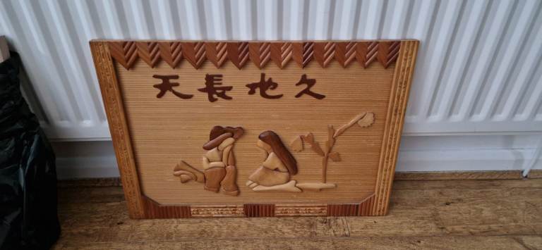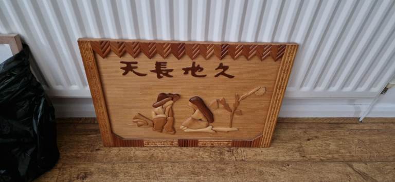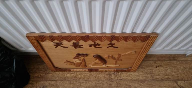 Chinese Wall art wood carved plaque 25" x 17.5"