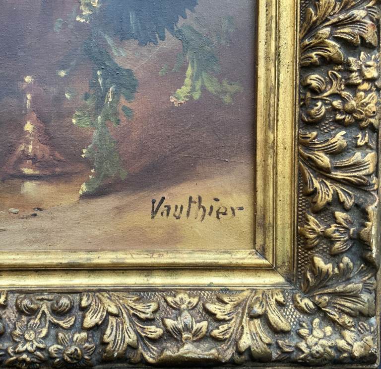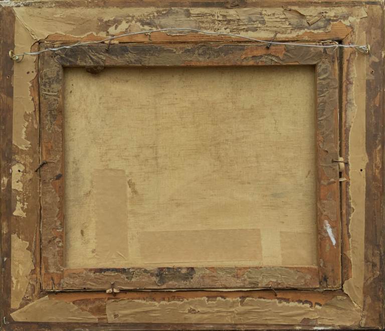 There are two small splits in the canvas, and there are 2 or 3 minor areas of gesso mouldings missing from the frame - see images.