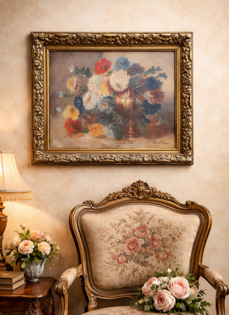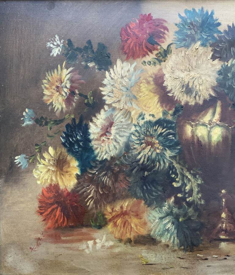 Fine 19th-Century Swiss Floral Still Life Oil painting for Minor TLC (2 of 2)