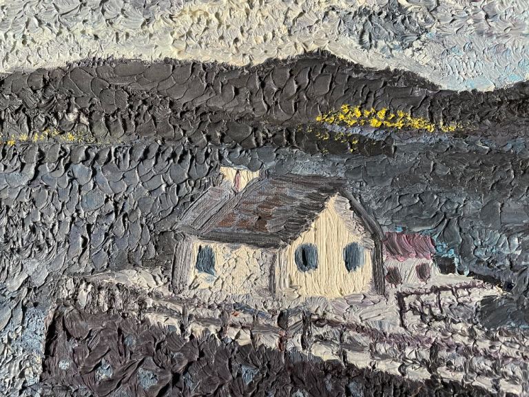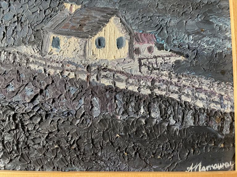 Lovely framed oil painting with a unique textured style, signed by the artist.