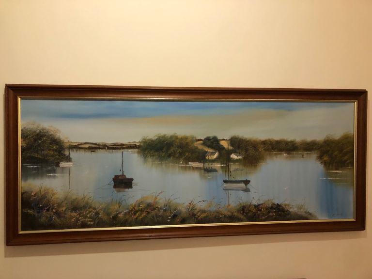 Beautiful edition of Dedham Loch, and Mill. Set in a Gilt frame, and covered with glass.