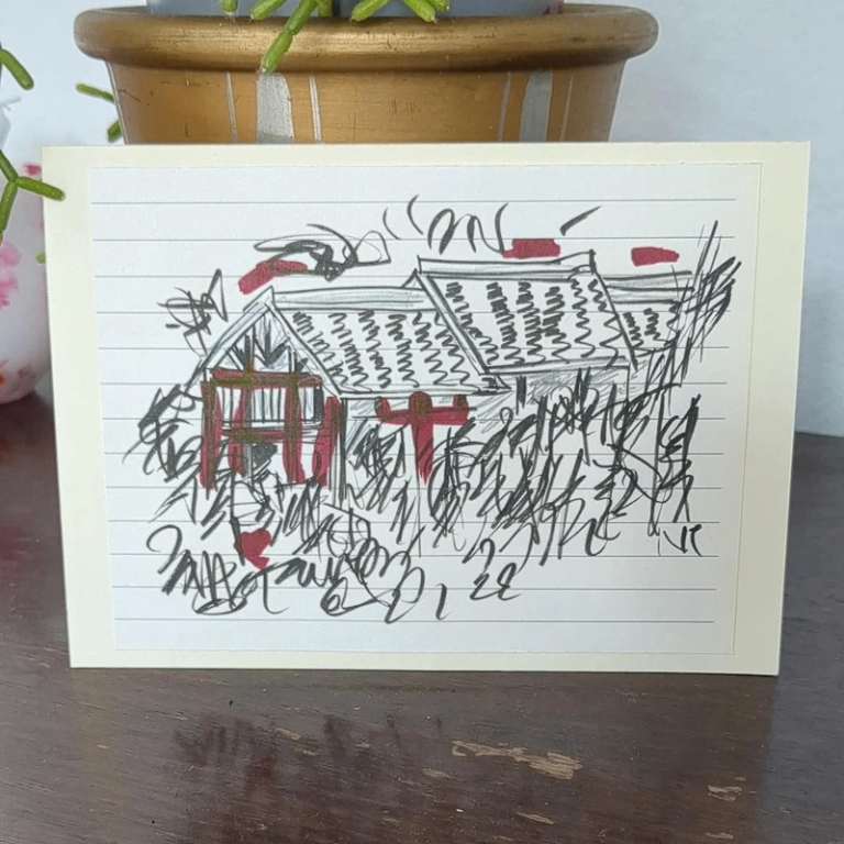 Hand-drawn sketch on lined paper 'A House Amongst The Trees' #handdrawn #sketch