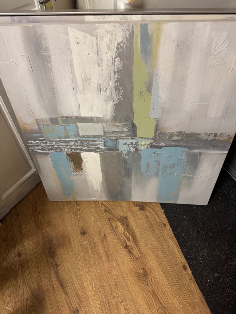 Posting for 14+ yearsLarge Abstract Canvas Painting – Grey, Blue, White