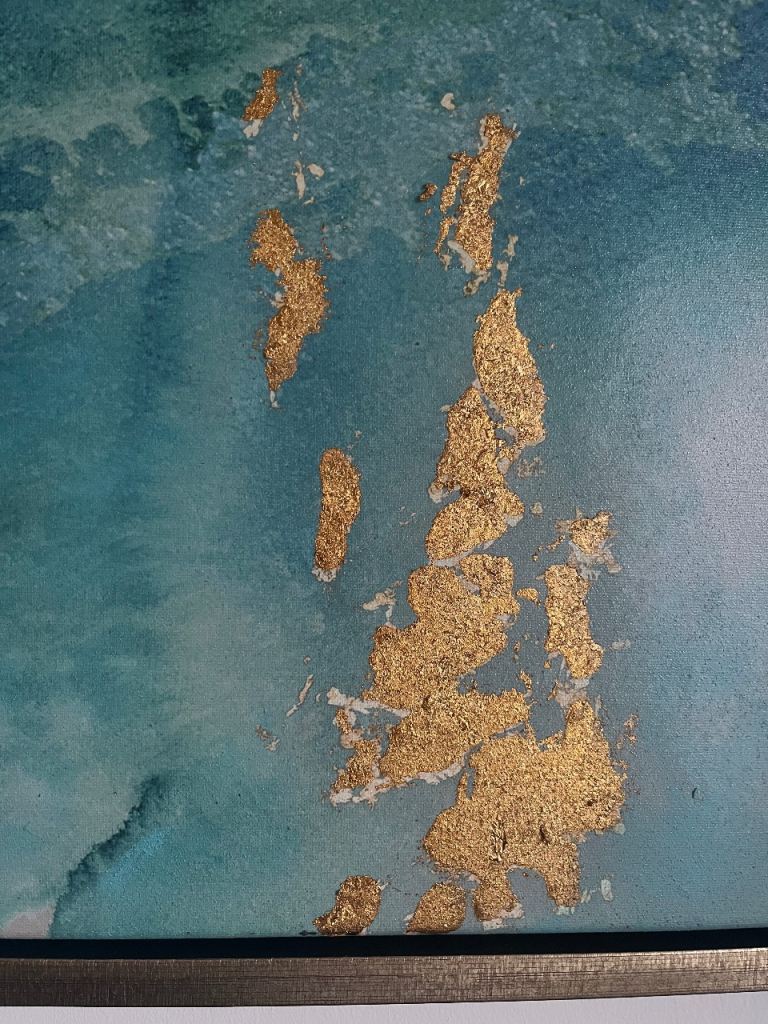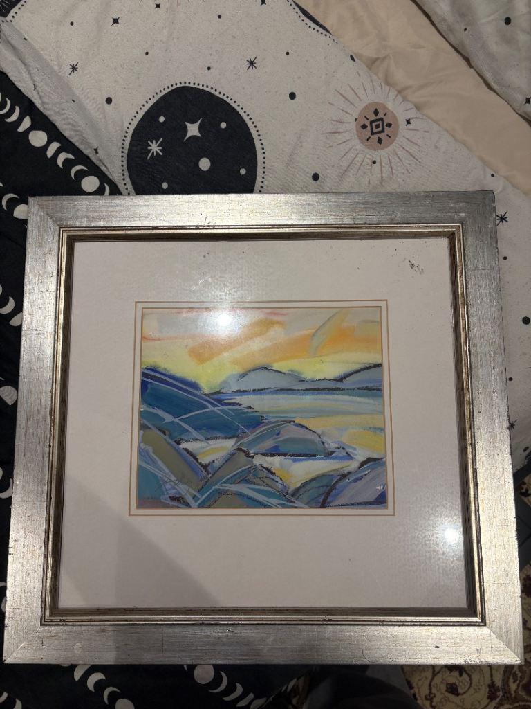Lovely large print in gold frame. Hand finished with gold paint. Very striking. 122x91cms and can be hung either landscape or portrait. Purchased from Belgica in Bo’ness a couple of years ago for £300. House move forces sale. From a smoke free home.