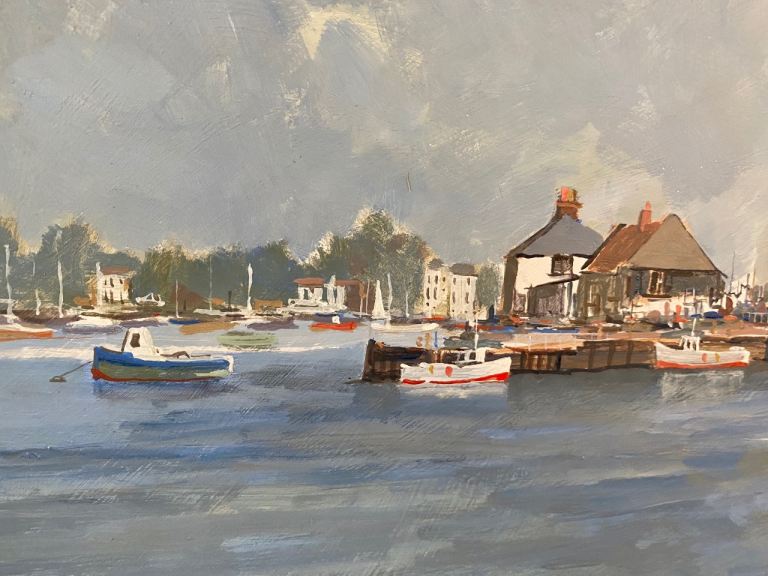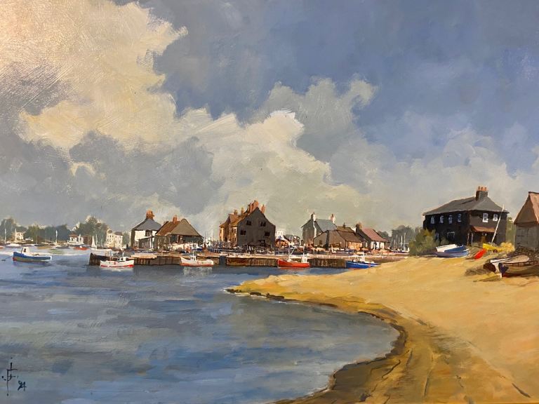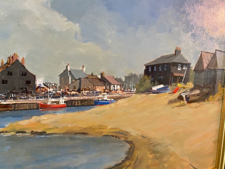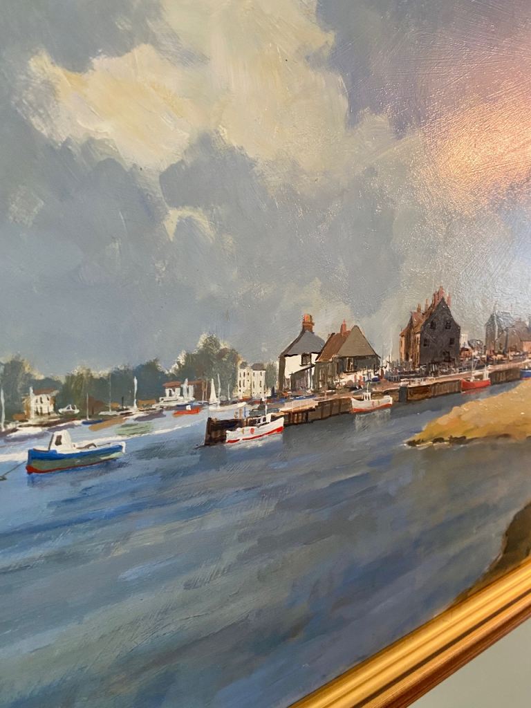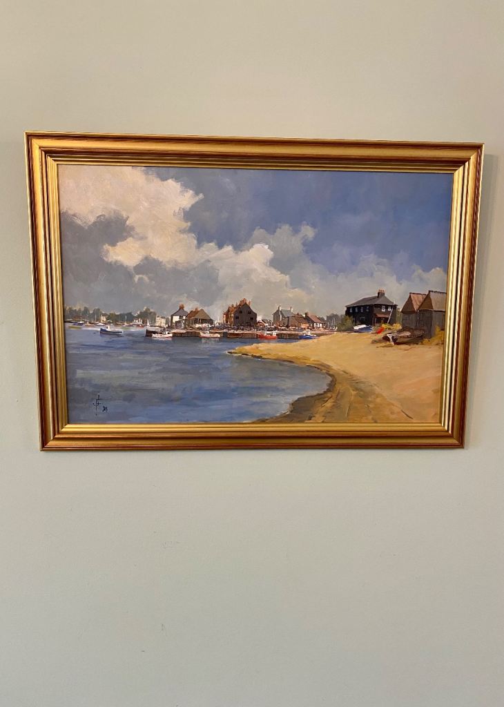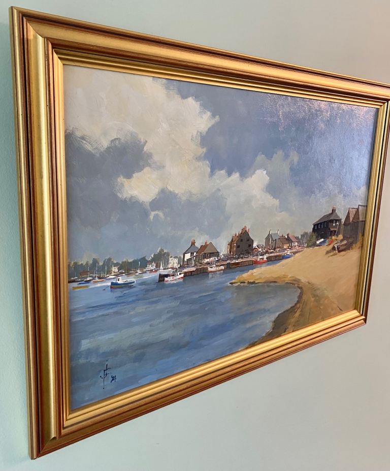 MUDEFORD QUAY ORIGINAL SIGNED PAINTING IN GOLDEN FRAME