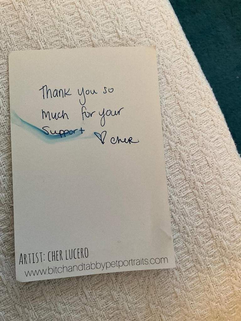 The picture is not signed but comes with a post card from Cher to a friend.