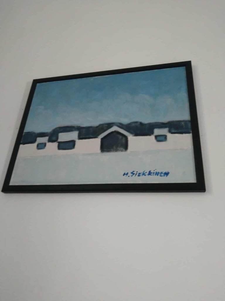 A small oil painting of a robin on canvas.