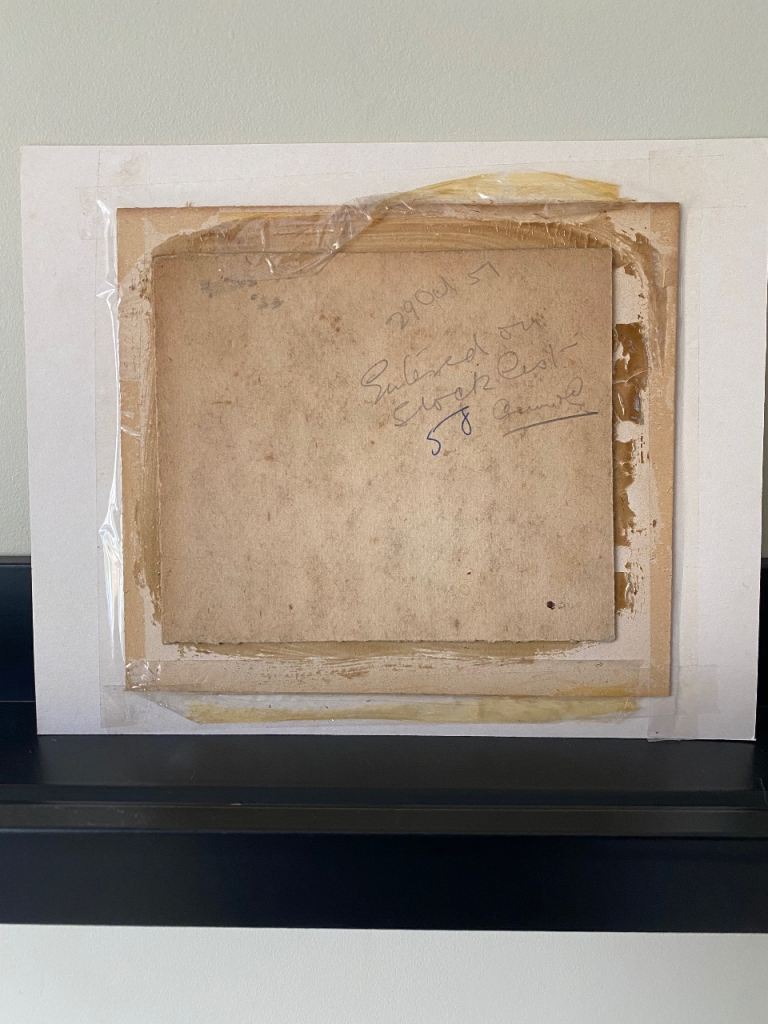 Unframed and unmounted (loosely taped on). Previously framed, but the frames have been removed as they were unsuitable. The artwork will need remounting.
