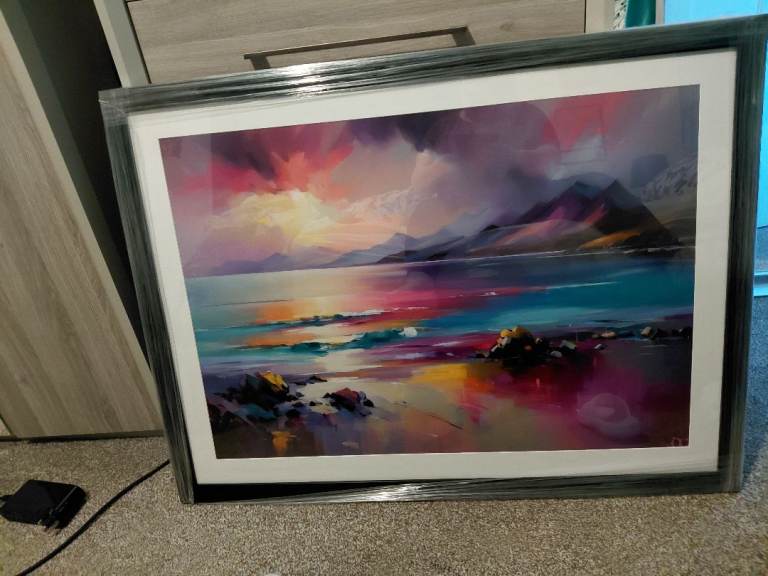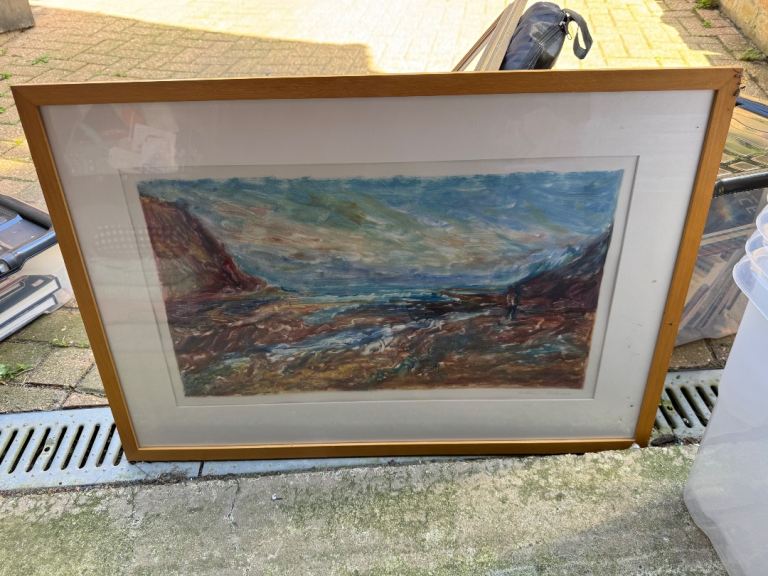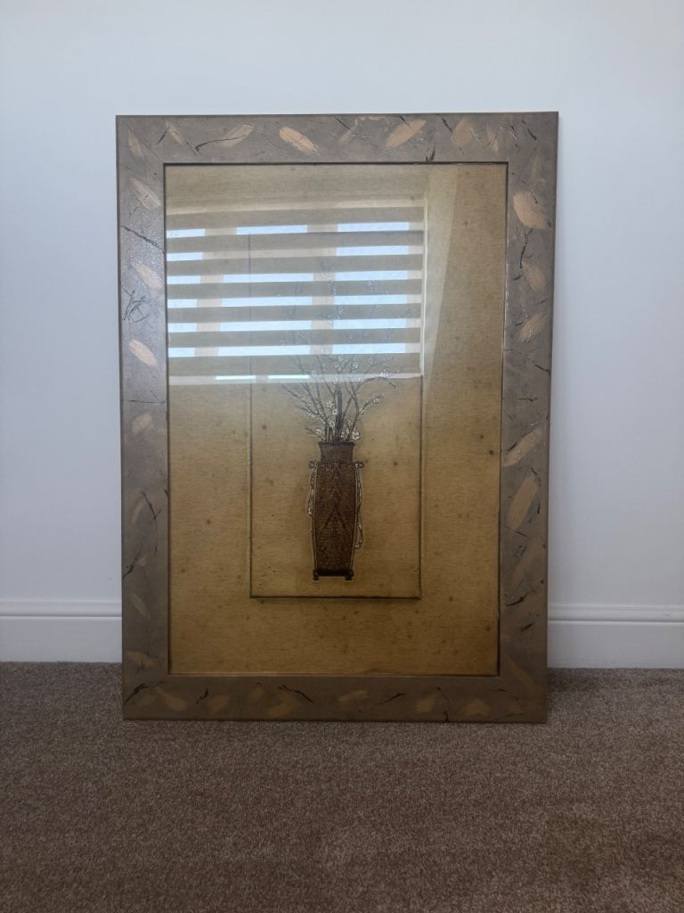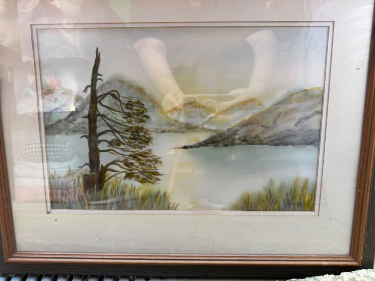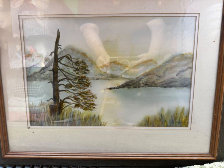 Lovely framed silk painting titled 'Calm Water', in good condition.
