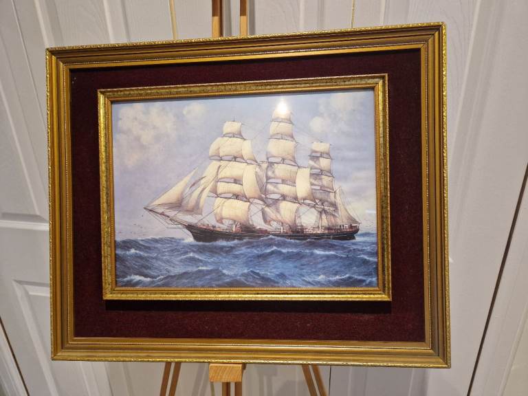 The frame is wooden with a brown finish, showing some minor wear consistent with age.