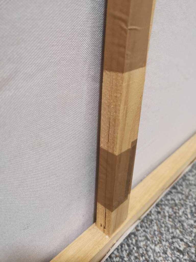 Used, but in good condition. The frame is slightly cracked (successfully fixed with tape).