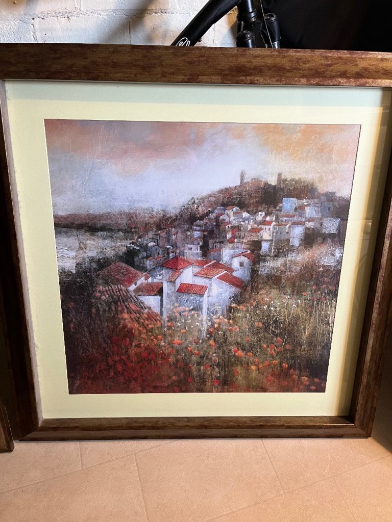 Two lovely framed art prints in good condition, featuring scenic landscape designs.