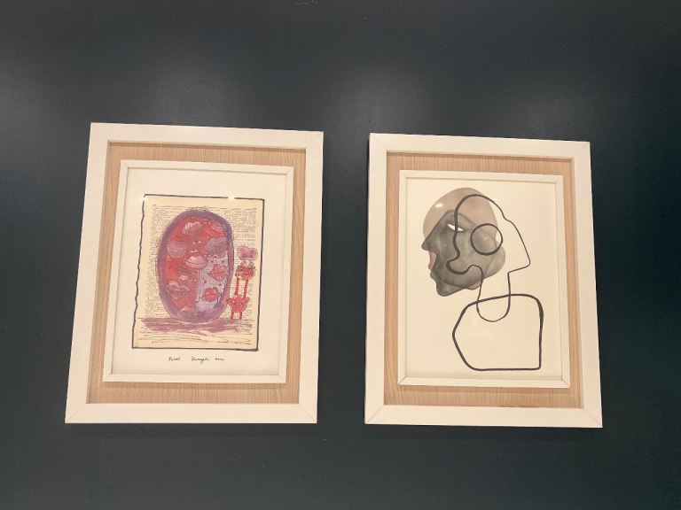 Unusual triple canvas pictures to form the illusion of a spiral staircase. Unusual design