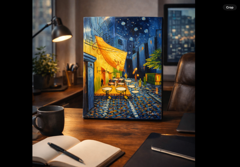 Cafe terrace by Night in full vibrant colours beautifully captured by C Banks