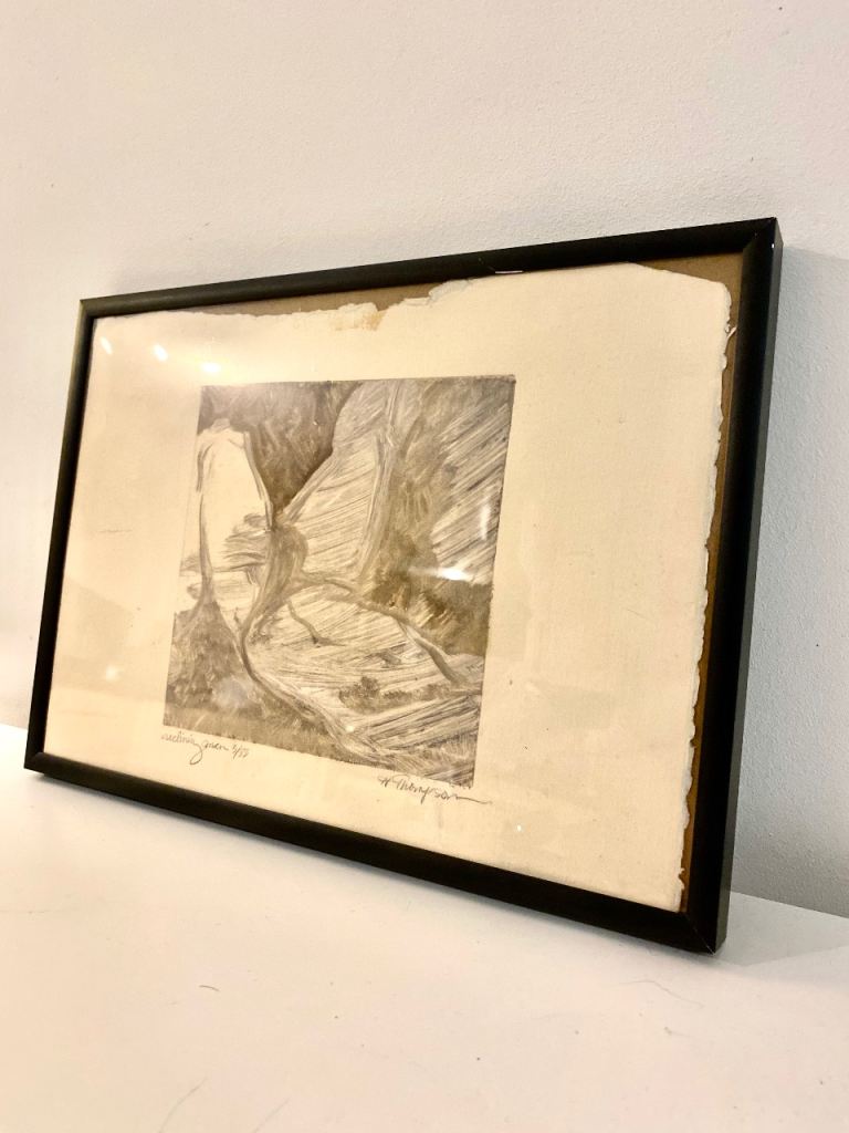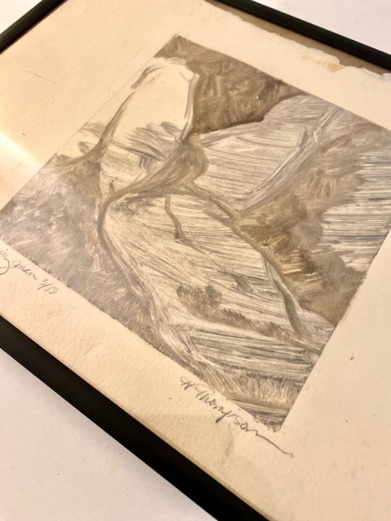 Vintage 1930s - 50s original art signed etching H.Thompson