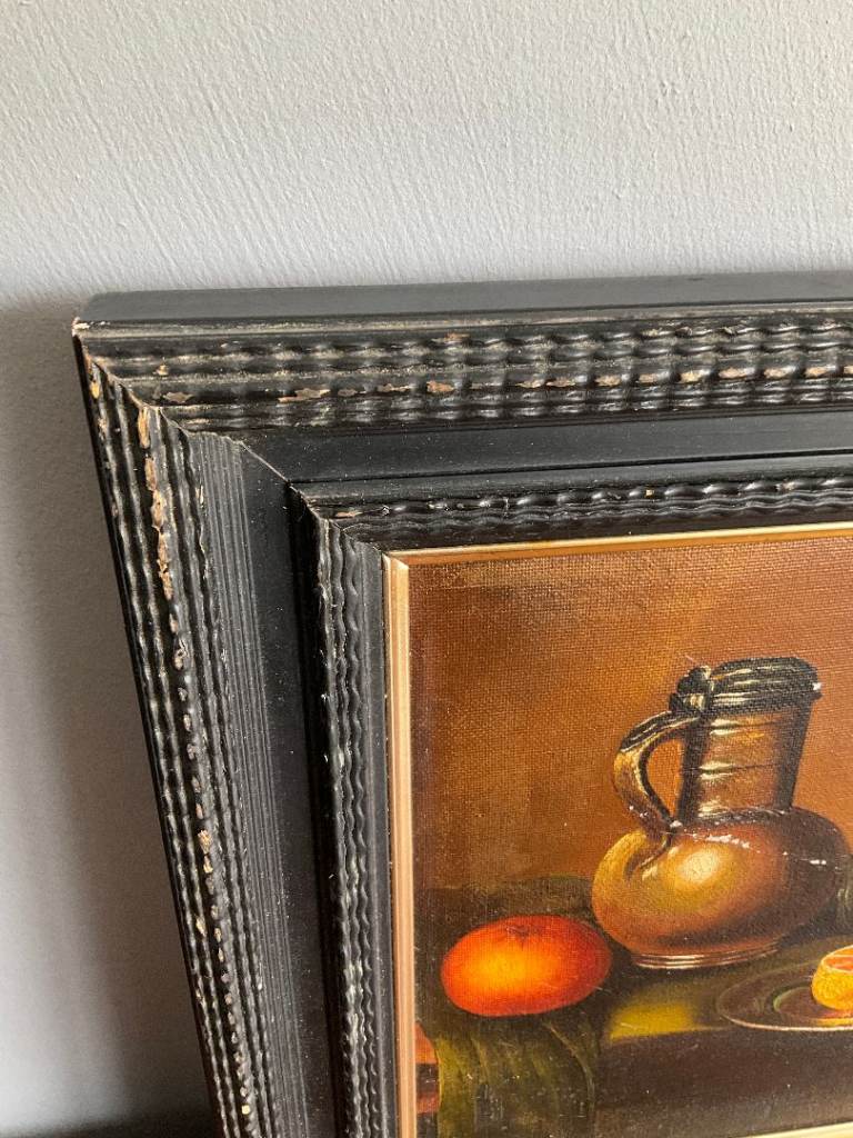 Vintage Framed Oil Painting Still Life Fruit Jug Canvas 46x37cm