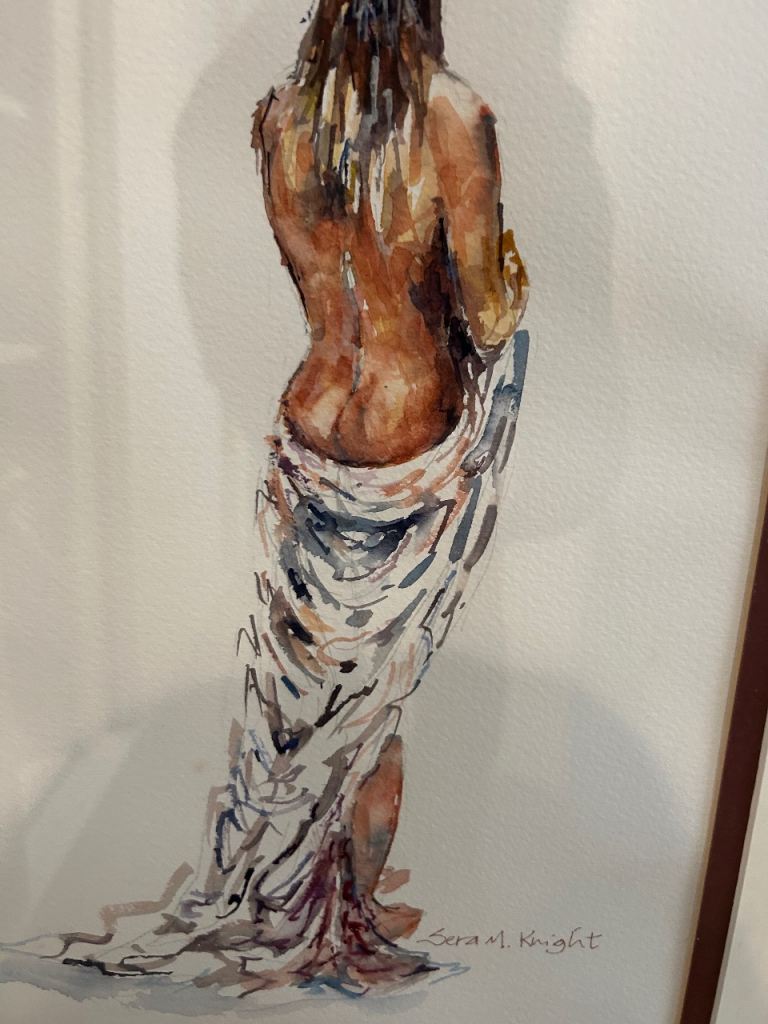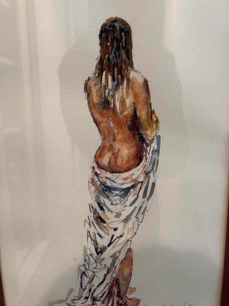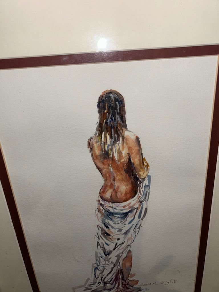 Posting for under a monthWatercolour of Girl Standing After Bath -Sera Knight original