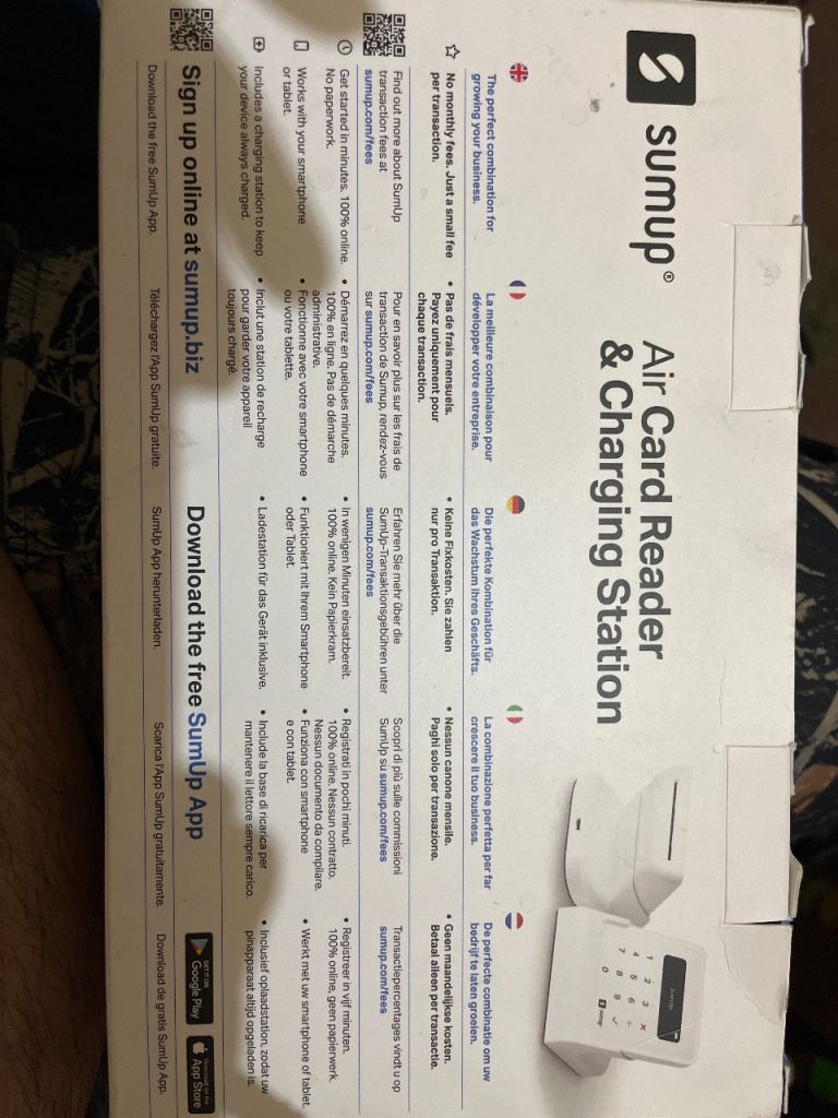 Sumup aircard reader plus Charging station for payments to yourself for transactions undertaken private or buisness