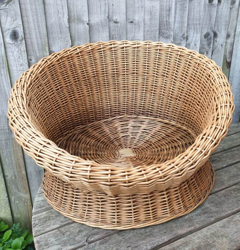 A round wicker cat/small dog basket, the basket measures approximately 52cms in diameter at the base with an internal measurement of 40cms diameter, £20, collection from West Worthing.