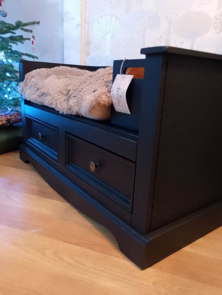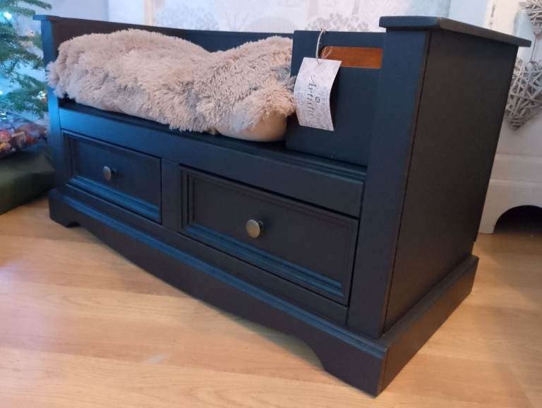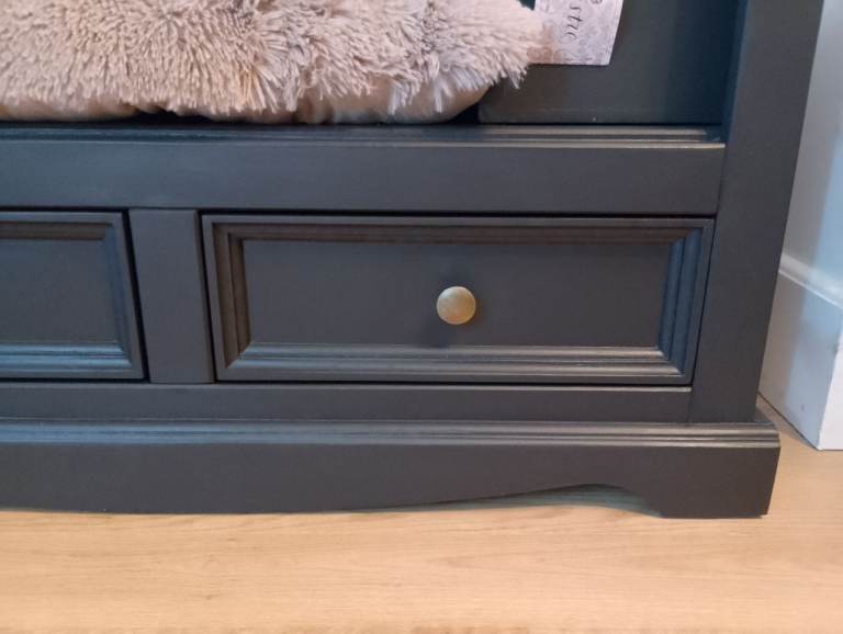 Professionally Hand Painted by me too (this is what I do) in multiple coats of the tough Frenchic Alfresco, colour Blackjack finished off with contrasting antique metal knobs