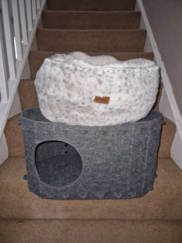 Sturdy cat scratching post with a comfortable bed on top - Beige Cream Colour
