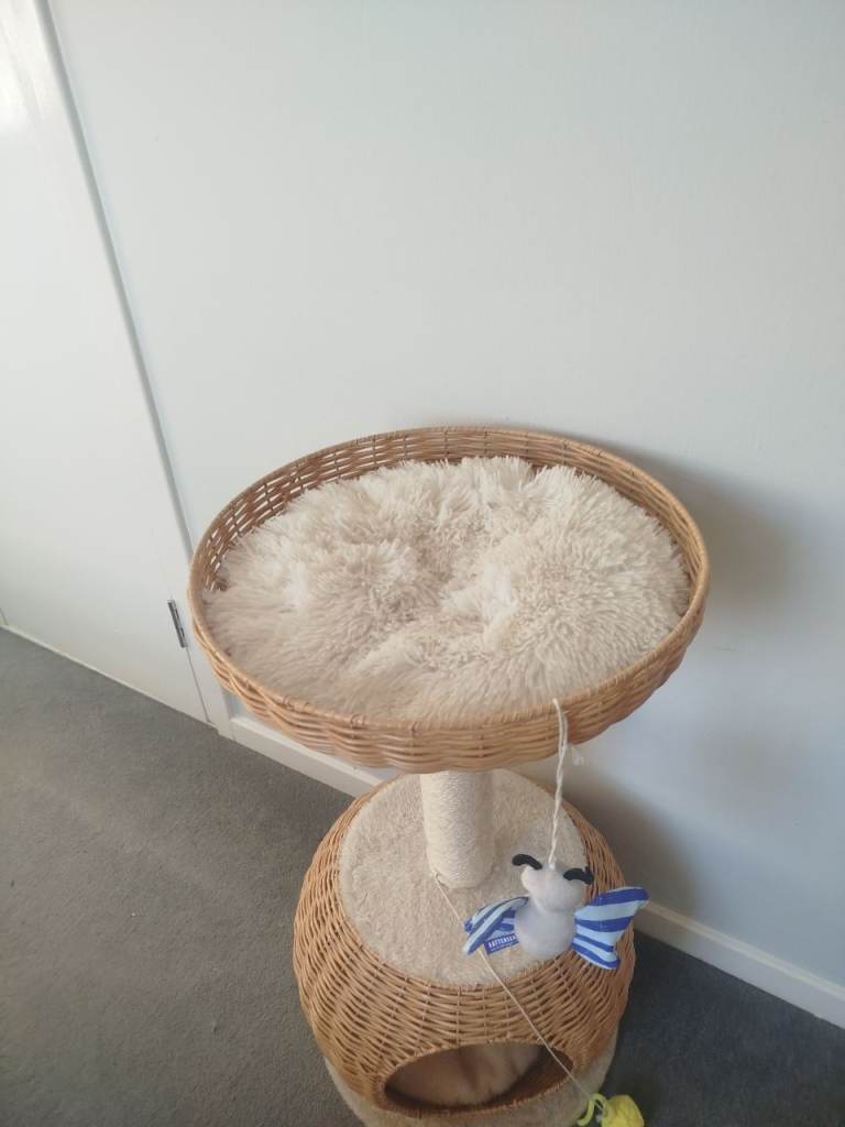 I bought this for my lovely cat but he doesn't like it at all. Is barely been used. I will remove the toys from it and they did not come with the tower. The tower comes with two lovely cushions.