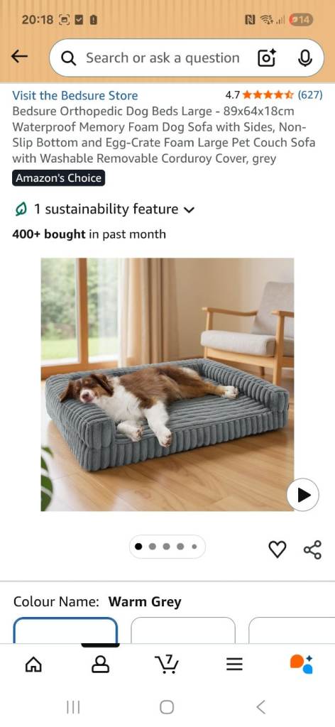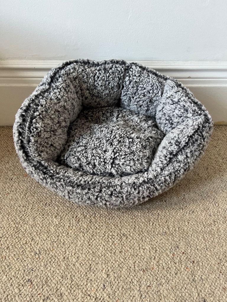 Practically brand new, bought from amazon but too small for my dog. Soft material, memory foam matress