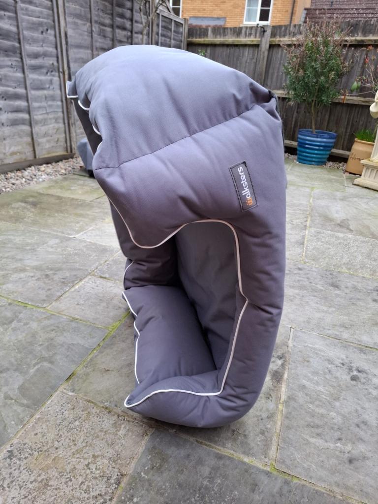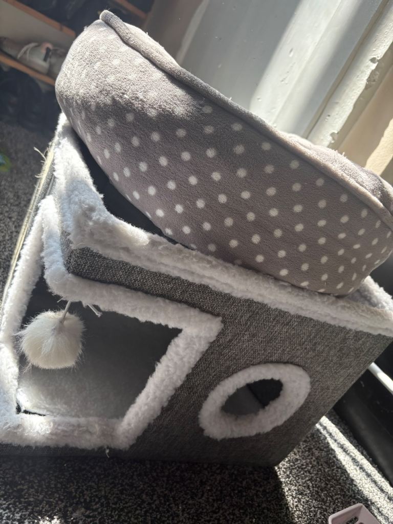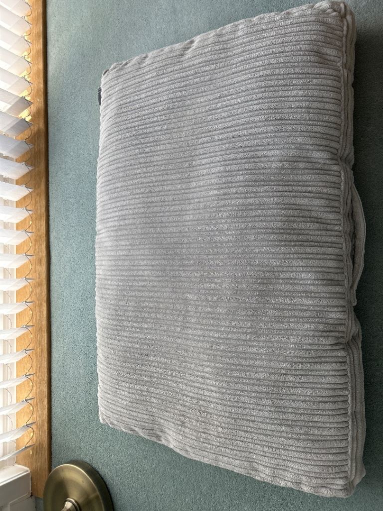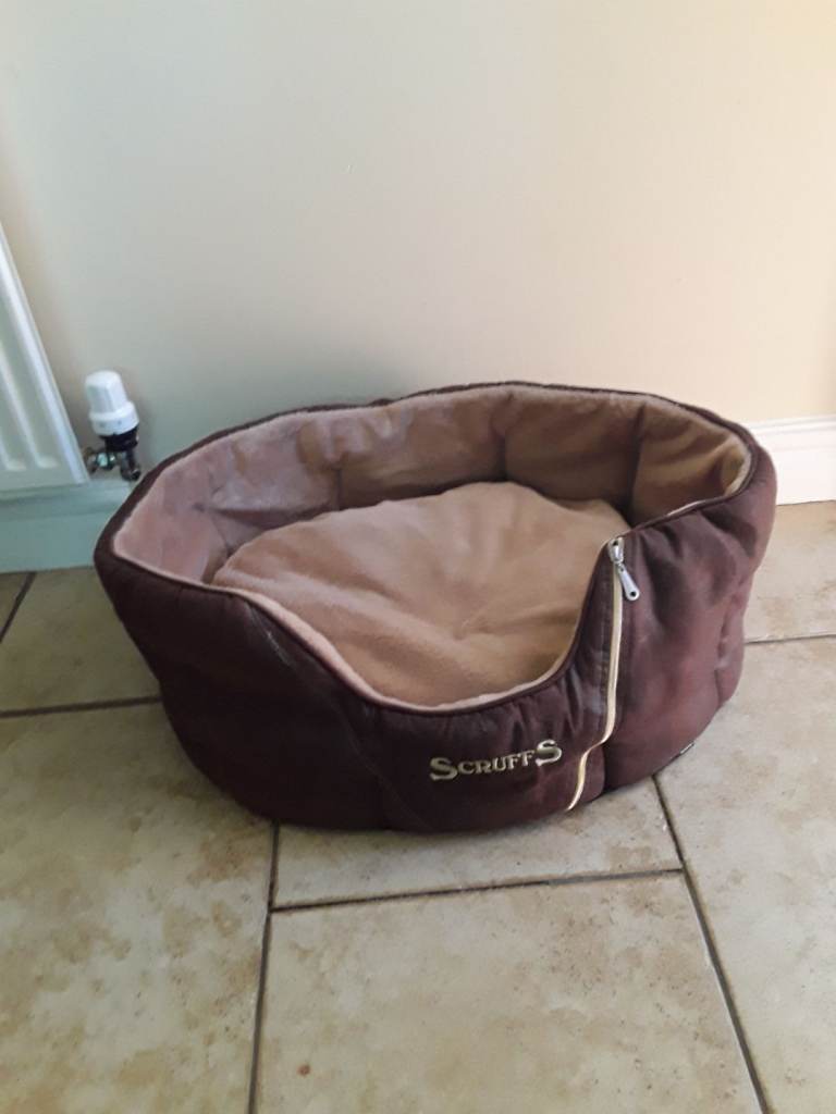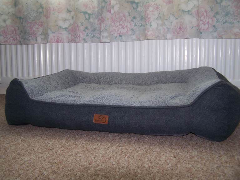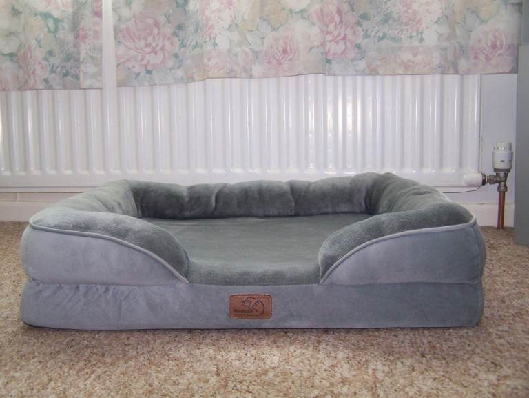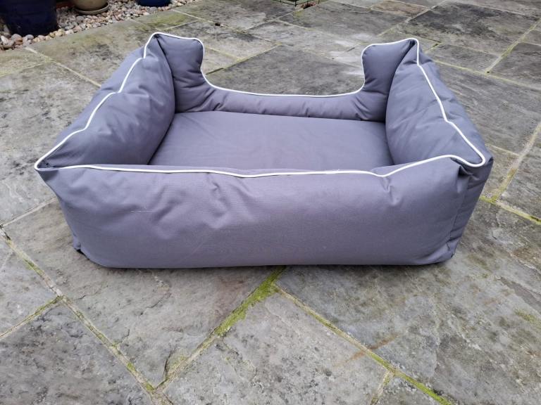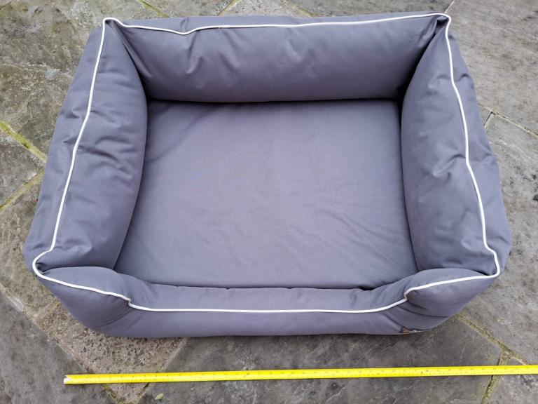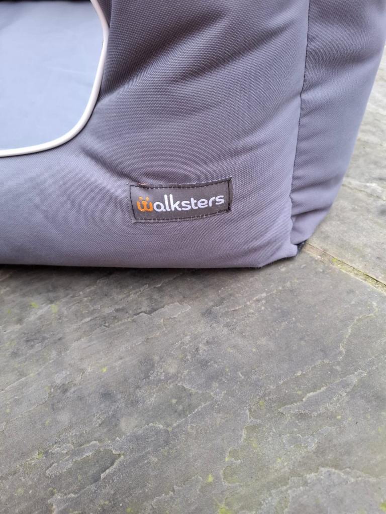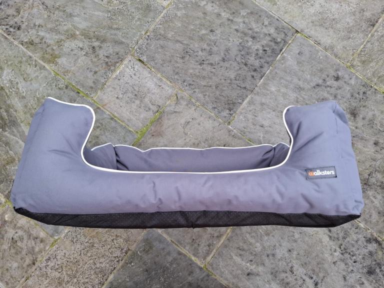 Walksters Ultimate Memory Foam dog bed in grey. Waterproof. 100cm x 80cm. Orthopaedic memory foam, tough and durable, water and odour resistant, flea and mite resistant, antibacterial fabric, UV resistant, easy to clean, non slip bed base. Only used twice as too big! Used by a non malting dog and from a smoke free home.