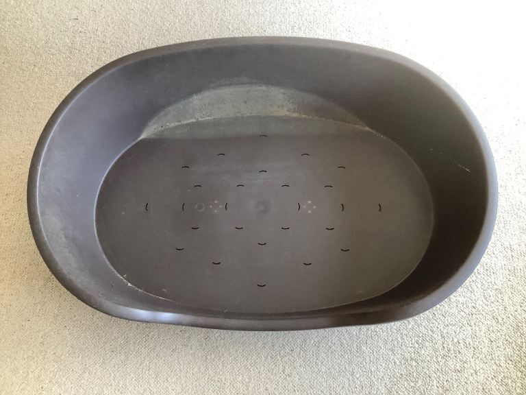 Plastic dog bed in good order. Has been used. Too small now for our dog. Size is 700mm long by 480mm.