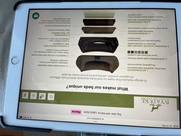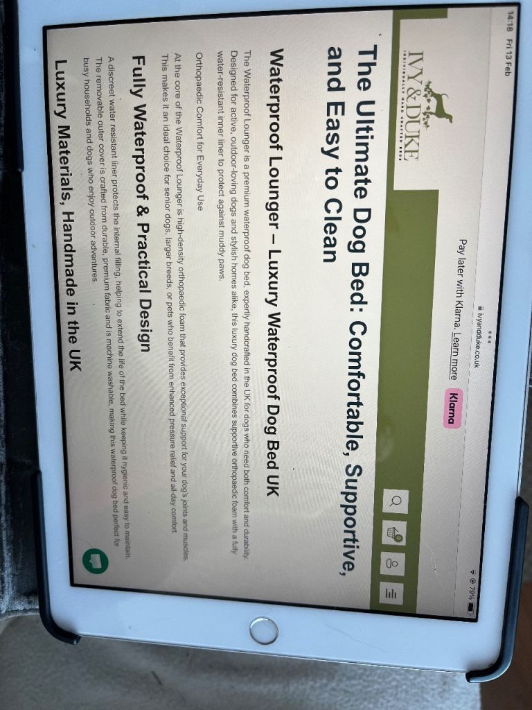 Bought this hand made orthopaedic dog bed in January for our Springer Spaniel and new puppy as they like to snuggle in together. We thought that this would be ideal for them both but unfortunately they are not using it, hence hoping to sell it. We paid £165 for this and will buy another but smaller bed from the same seller as the quality is excellent.