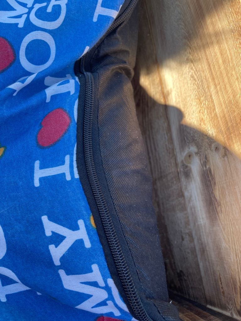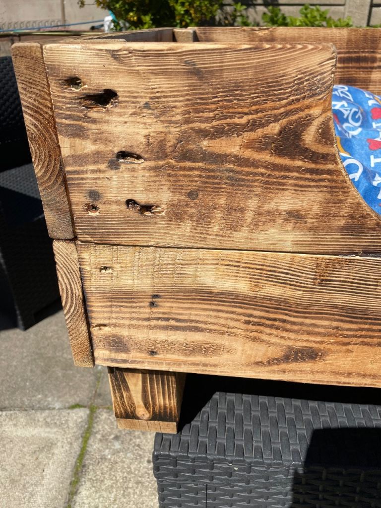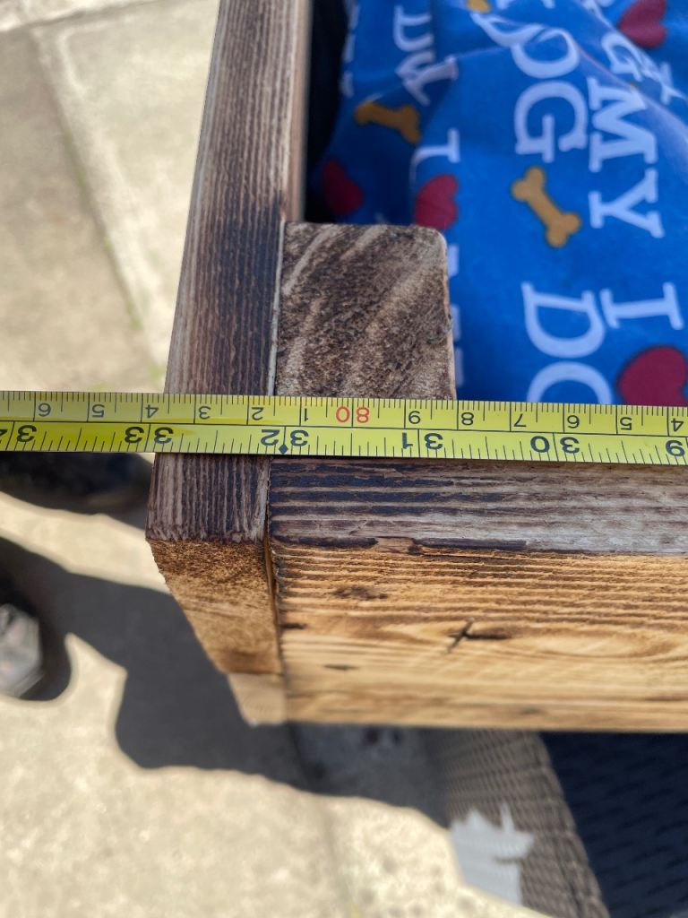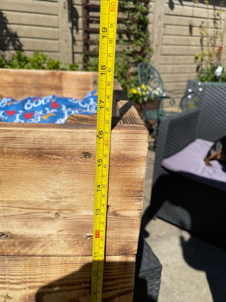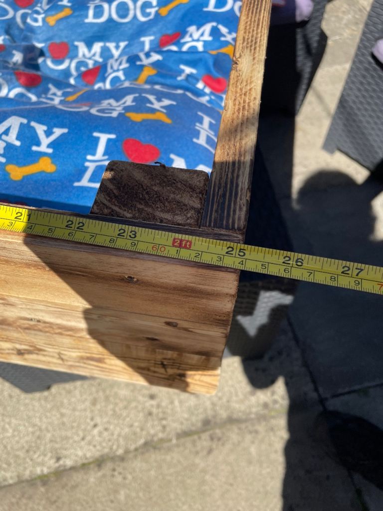Large new hand made dog bed complete with cushion. Cushion cover unzips for washing please see photos for measurements