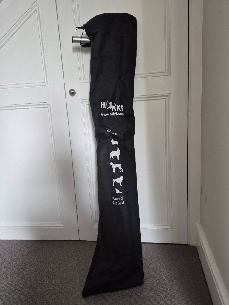 HiK9 Dog Bed with Grey Mesh Cover. Only used a couple of times as dog didn't take to it. Size Large. Comes apart and with bag.