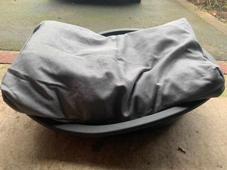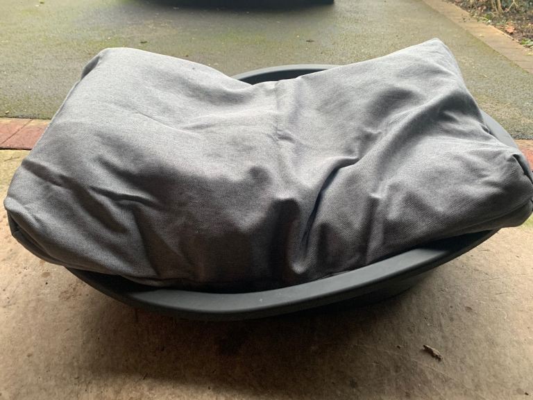 Posting for 9+ monthsLarge plastic dog bed with cushion and removable cover