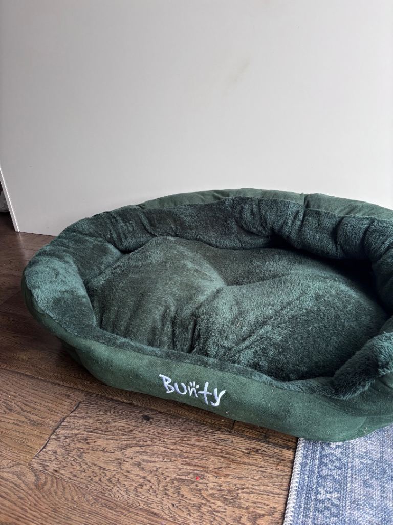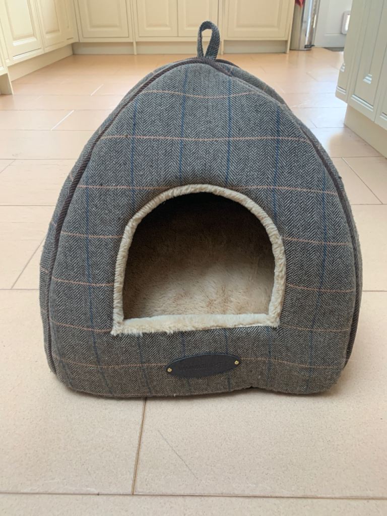 Brand new my dog has sat on it for 5 minutes as he prefers to lie on the carpet.