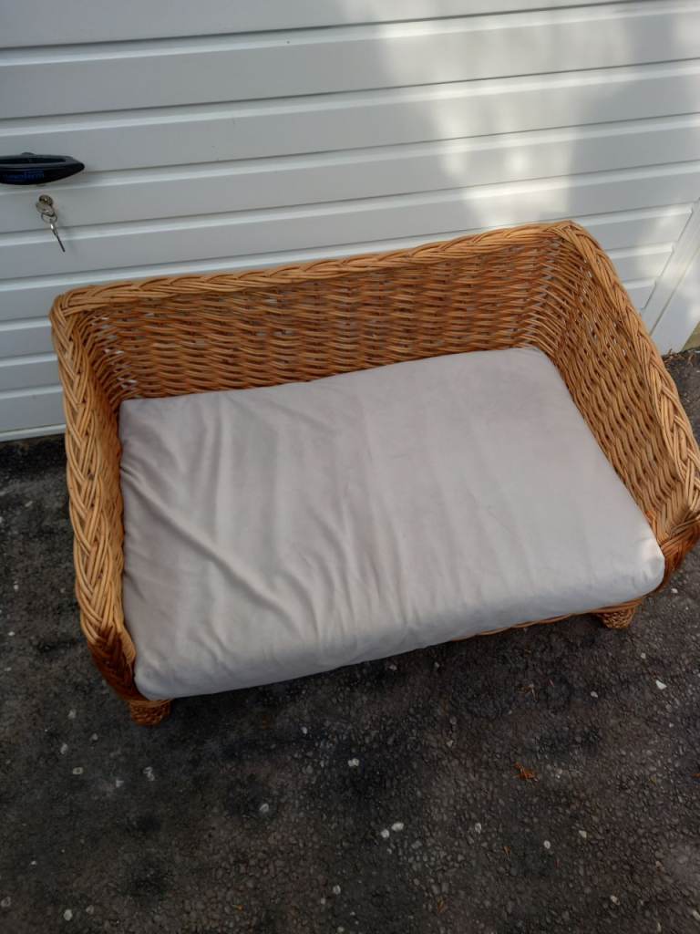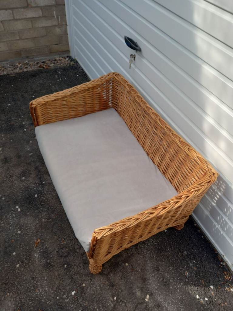 Posting for 12+ yearspre owned wicker dog bed with internal fitted cushion