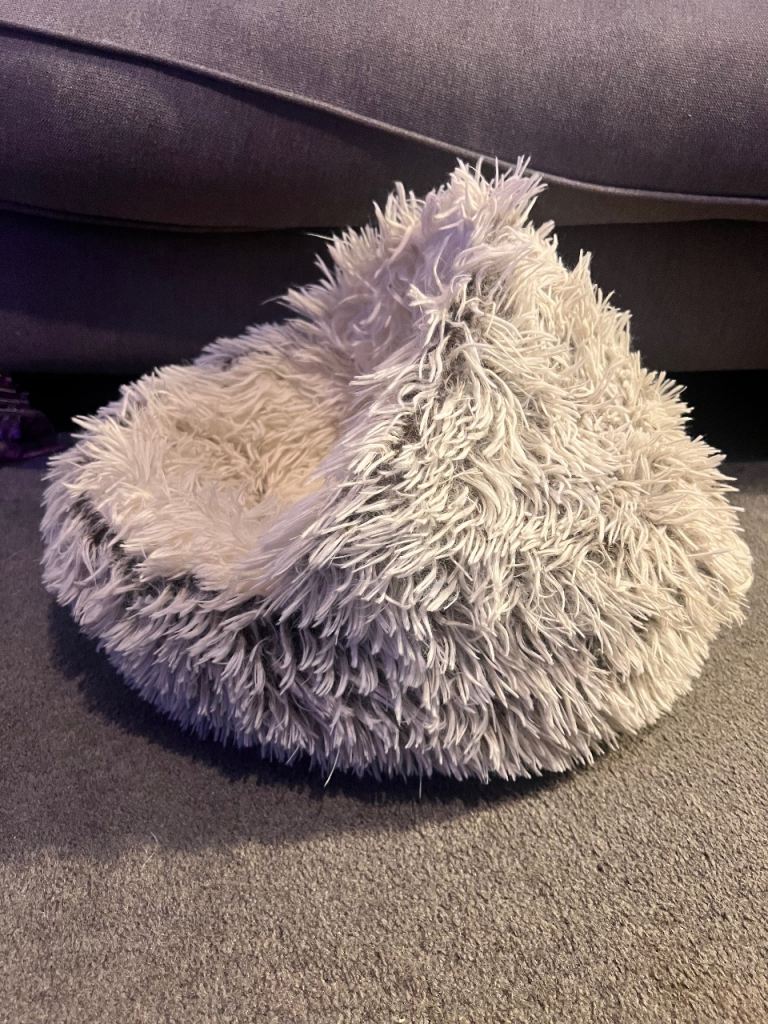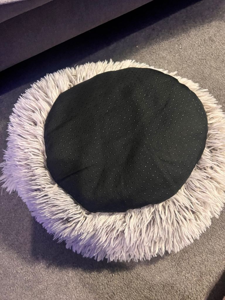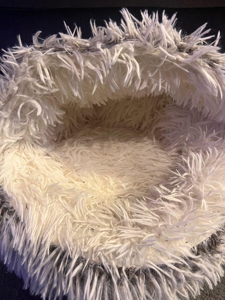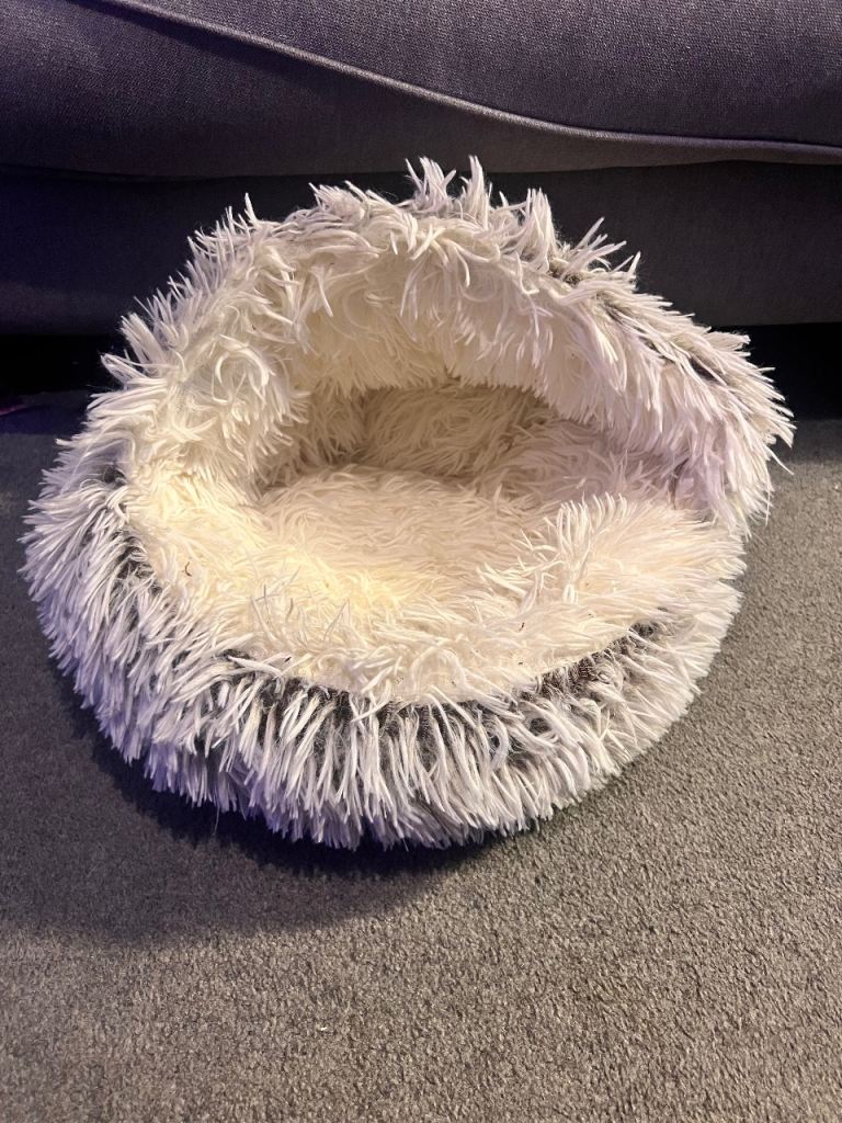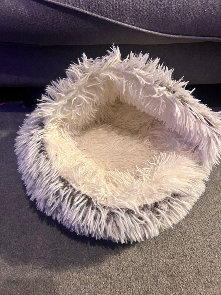 Small animal bed, have been used for our cat. Roughly 40cm in width and about 40cm in depth, to help with sizing. Please see pictures for more details
