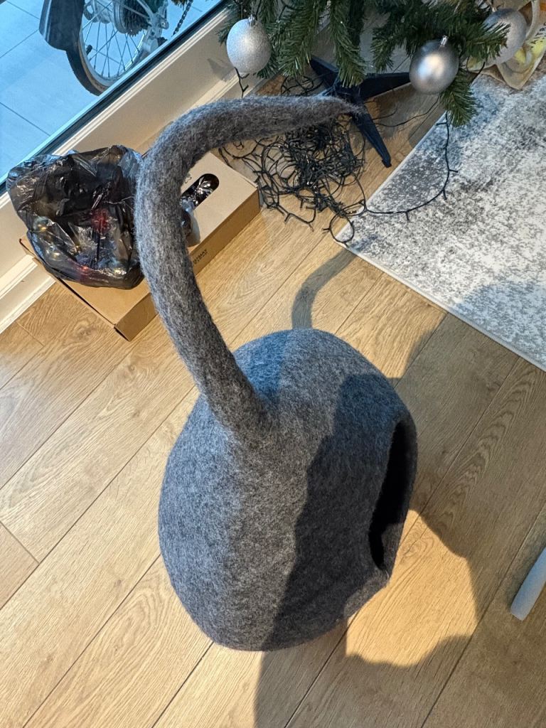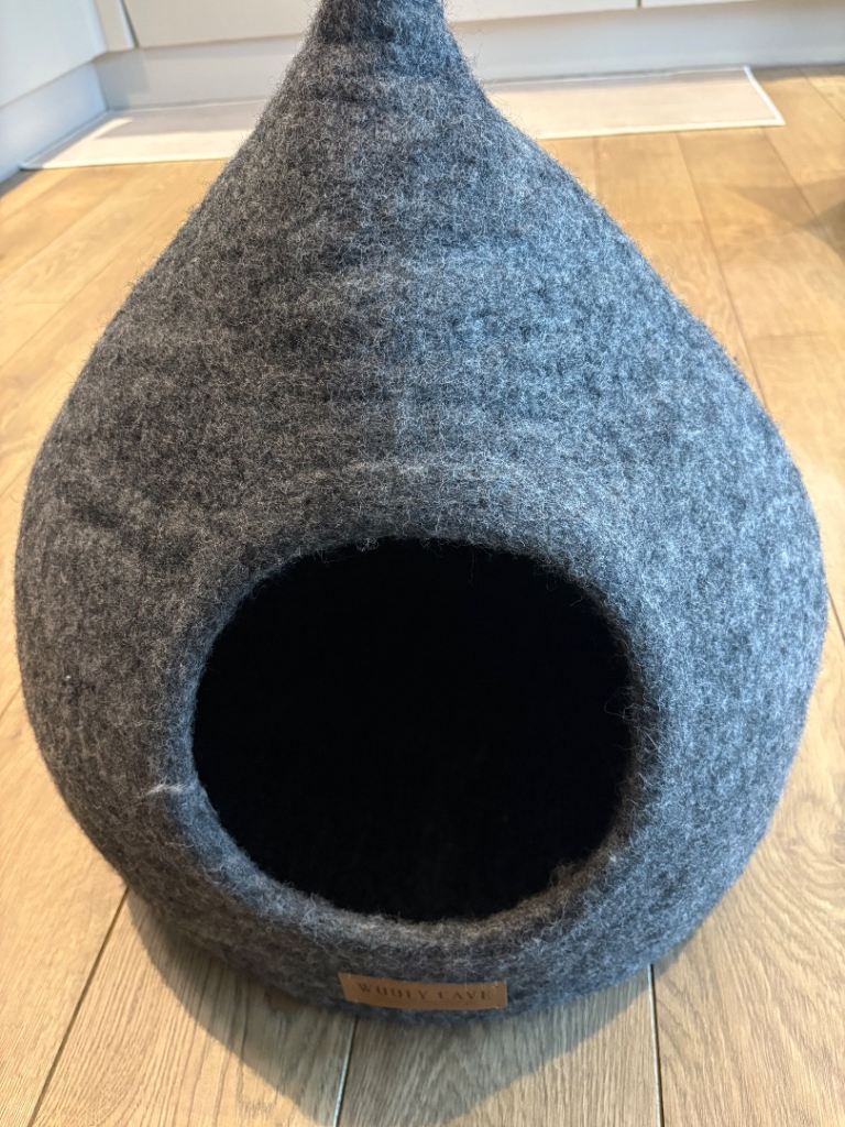On arrival, the cave may have a few folds — simply reshape it by hand and allow up to 72 hours for the wool to return to its original form after airing.