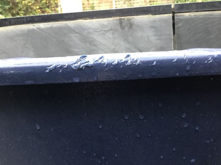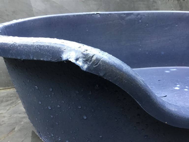 Hard-wearing dog bed in tough plastic. In good used condition. Please see pictures for puppy bite marks.