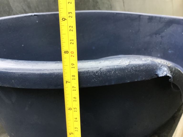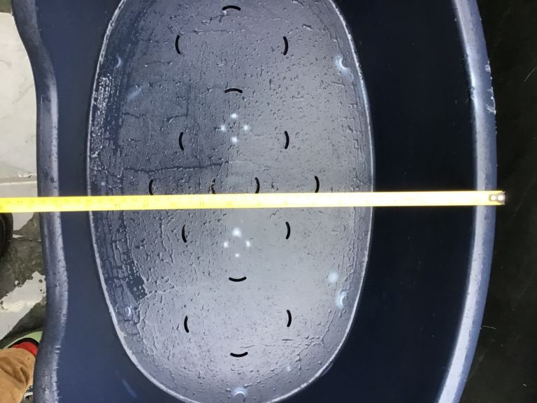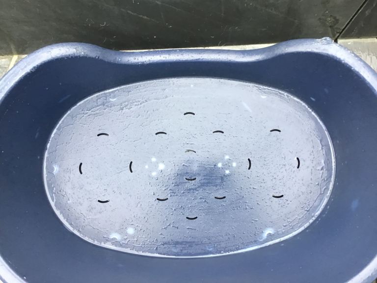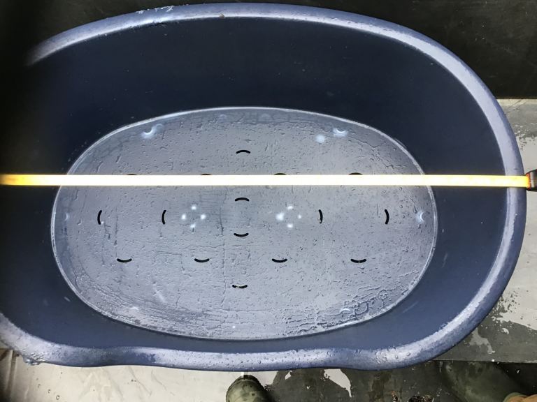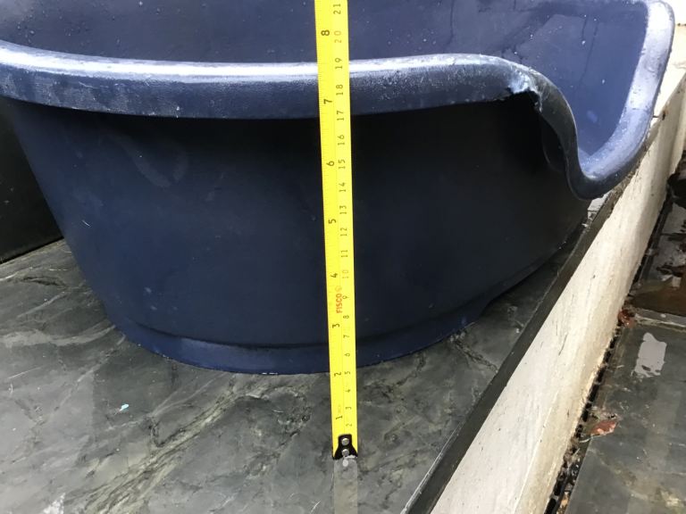 Posting for 11+ yearsTough plastic dog bed, medium size, dark blue