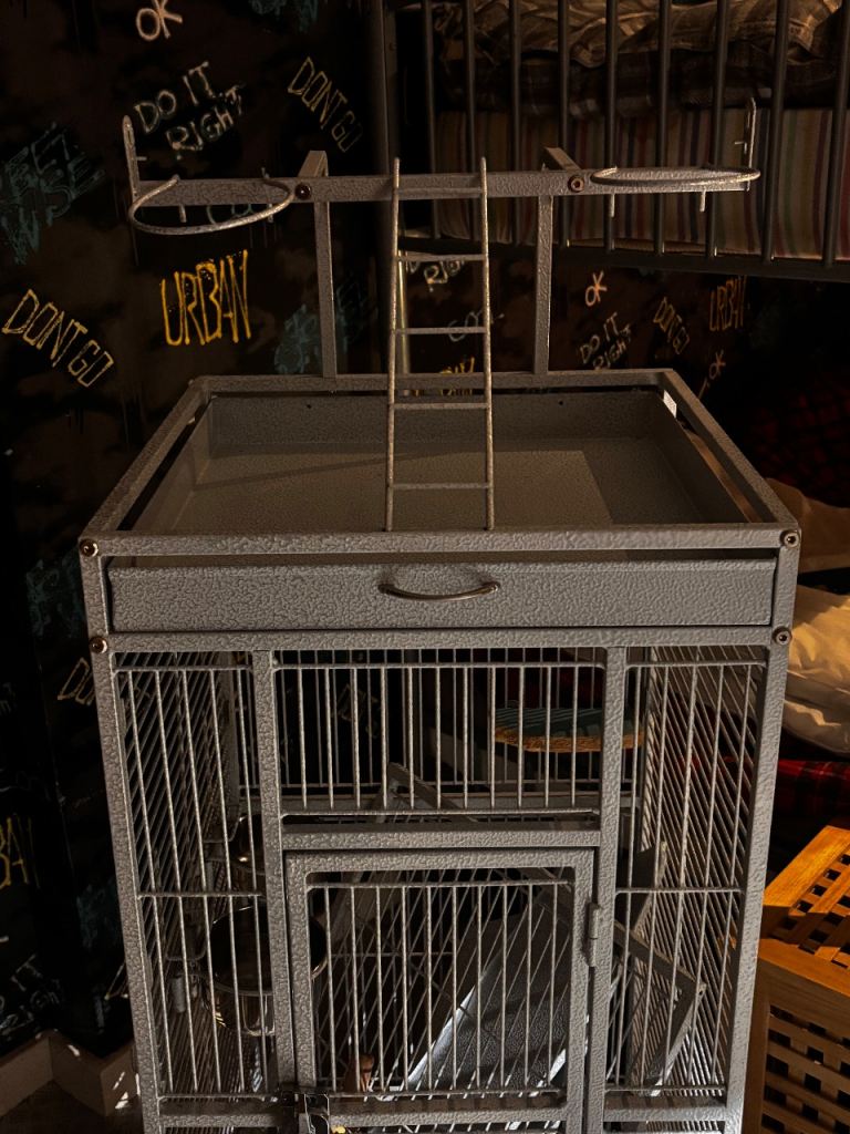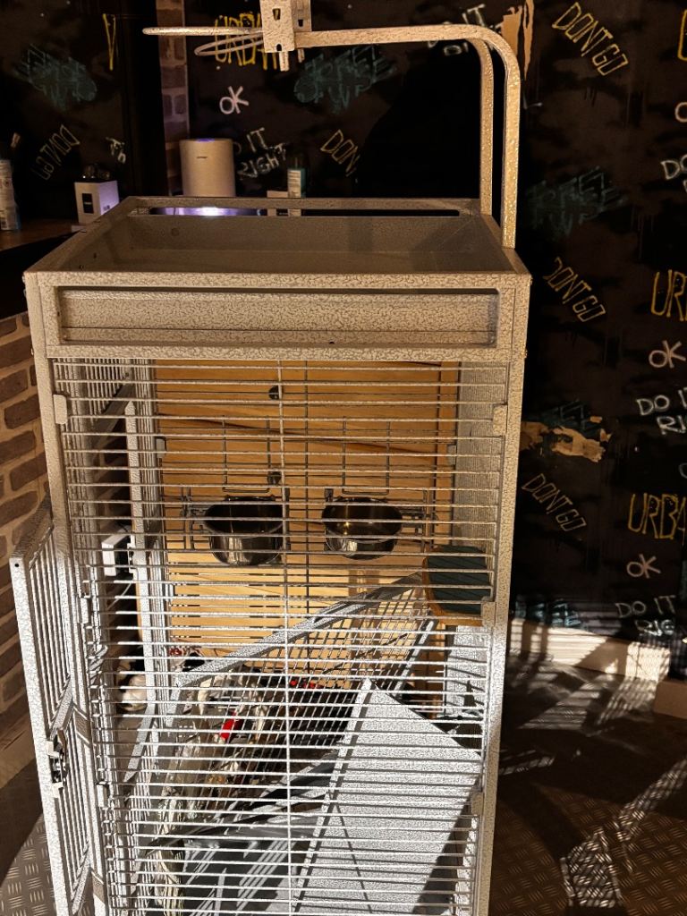 Parrot cage in really good condition bought it in 2024 for £160 selling it bc no longer need comes with side parts some toys and 4 bols and a parch
