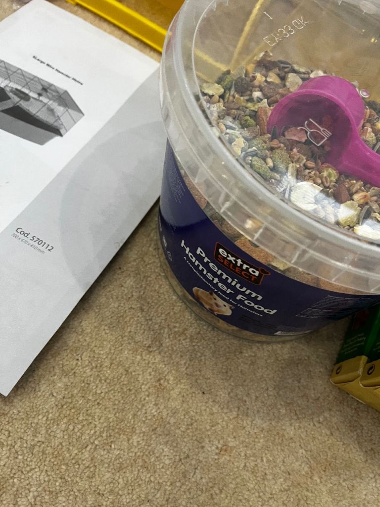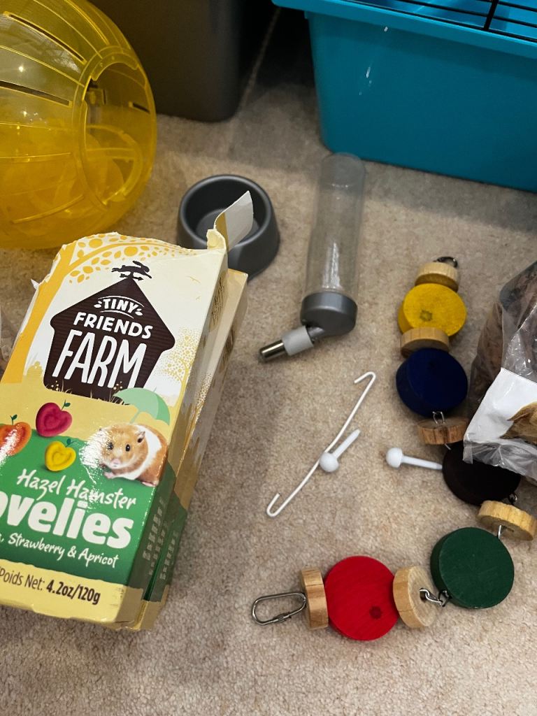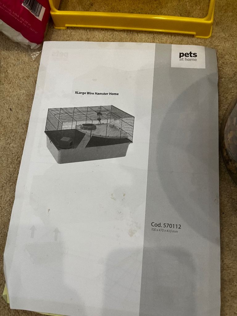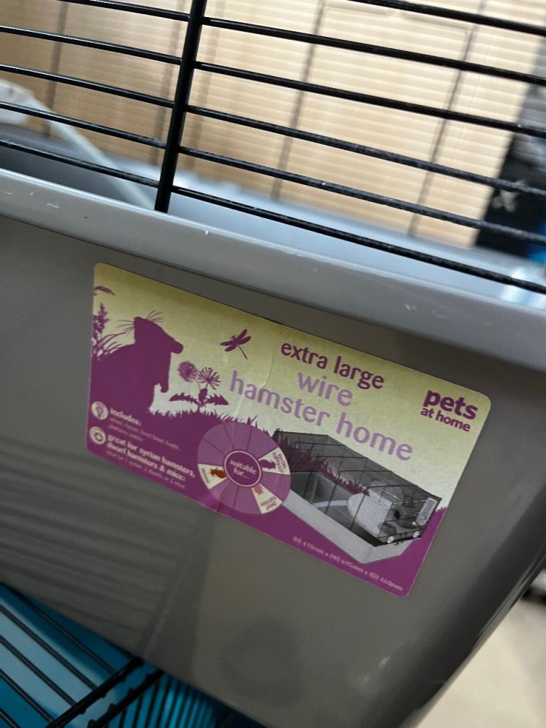 £5 for cage only (includes bed, bottle, food bowl and wheel).
