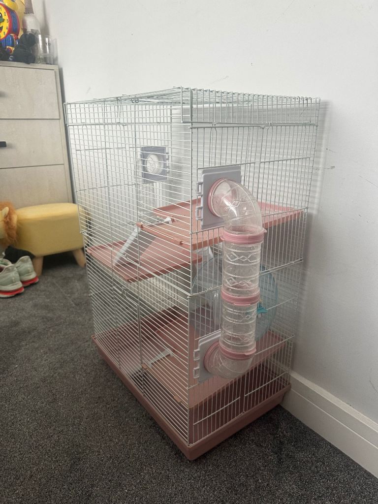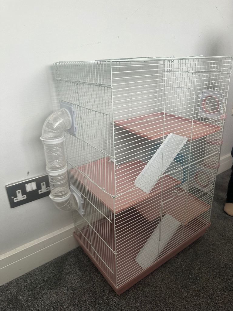 Posting for 6+ years3 tier hamster cage with tubes and wheel